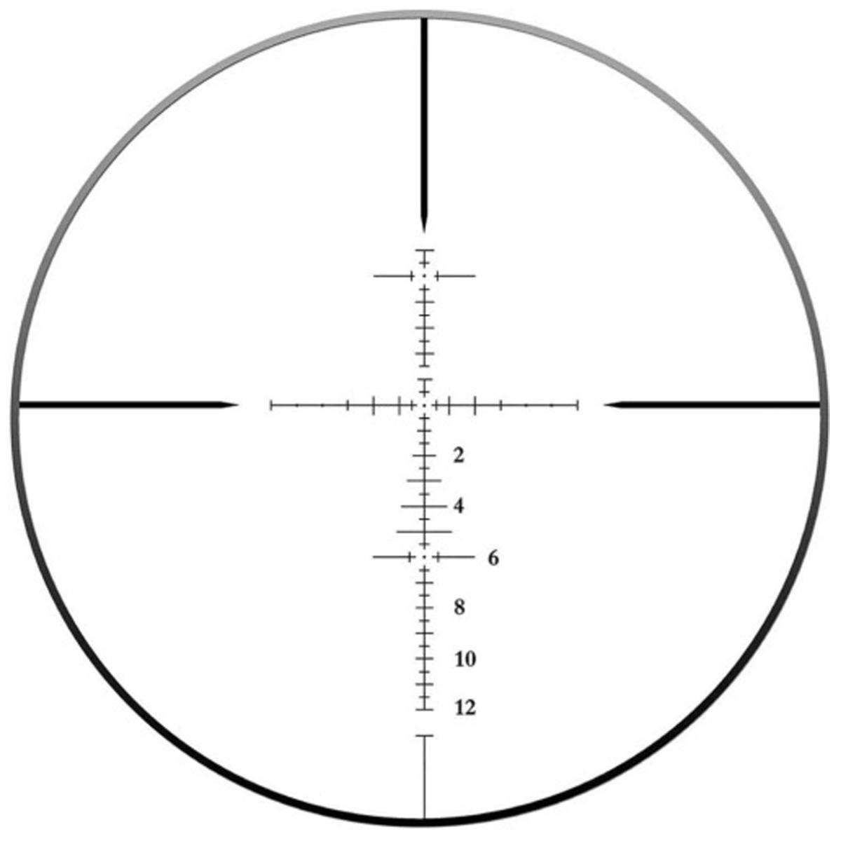 Прицільна сітка DL FFP MIL виконана у першій фокальній площині (FFP), тому розмітка масштабується разом зі зміною кратності, роблячи вимірювання поправок більш точними й зручними під час стрільби на різних відстанях. Для усунення паралакса передбачено бокове регулювання (Side Focus), яке дозволяє налаштовувати різкість від 9,14 м (10 ярдів) до нескінченності — цей широкий діапазон пропонує коректну роботу прицілу як на близьких, так і на дальніх дистанціях без оптичних спотворень.