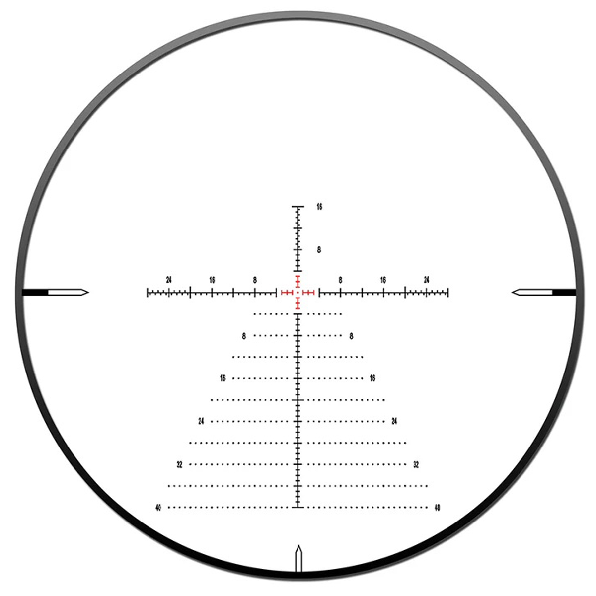 Оптична конструкція прицілу забезпечує комфортне спостереження завдяки значному віддаленню вихідної зіниці в діапазоні 95-93 мм. Діаметр вихідної зіниці становить від 9.51 мм до 1.54 мм. Поле зору варіюється від 3.38° до 0.52° (5.9-0.9 м на 100 м), що є оптимальним для прицілів з таким потужним збільшенням. Механізм введення поправок має великий діапазон регулювання: 35 MRAD по вертикалі та 18 MRAD по горизонталі, що стало можливим завдяки масивній 35-мм трубі. Тактичні барабани з чіткими та добре відчутними кліками ціною 1/10 MIL (0.1 MRAD) дозволяють вносити точні та повторювані корекції.