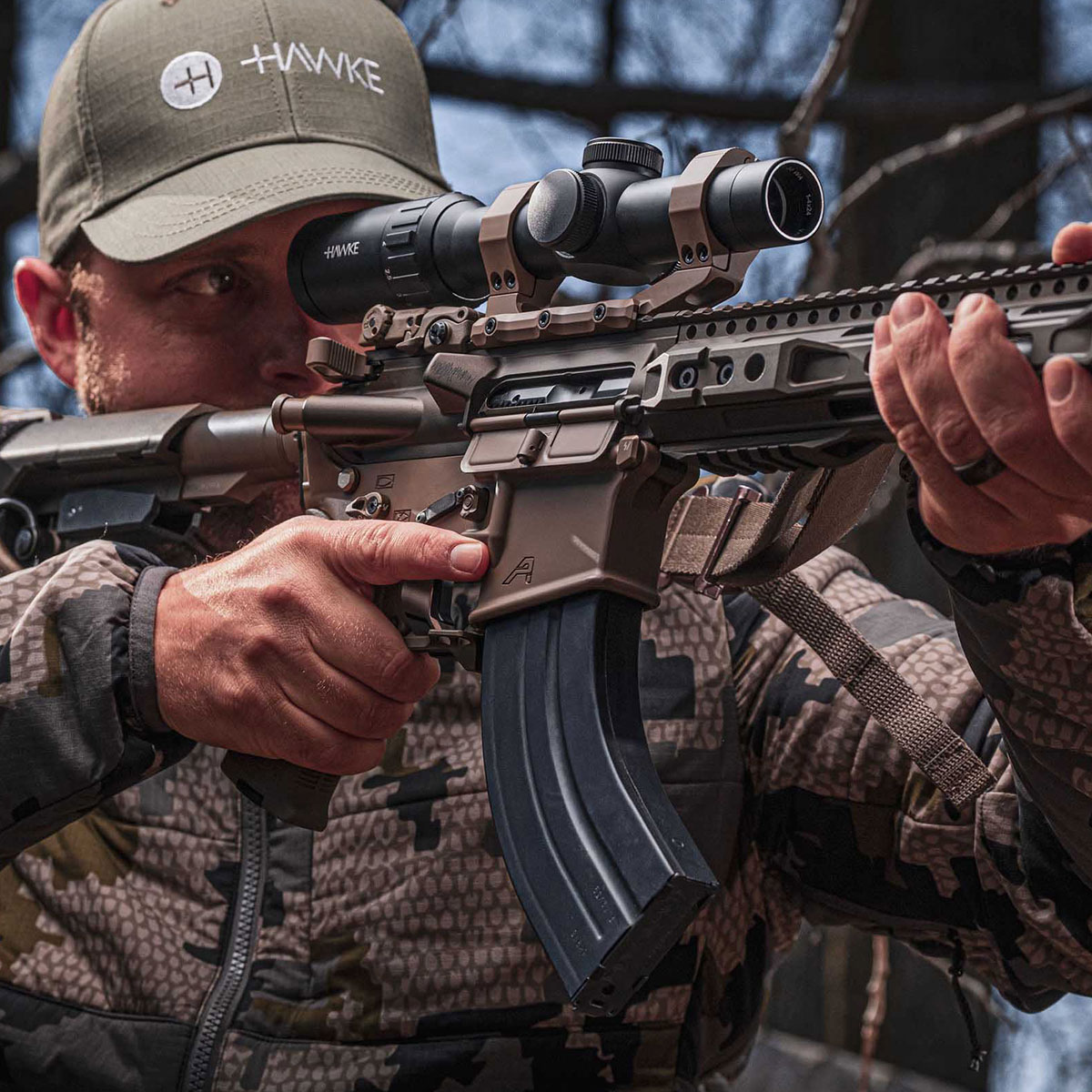 Приціл Hawke Vantage 30 WA 1-8x24 (SFP, Tactical BDC - 5.56 IR, 30 мм) призначений для встановлення на пневматичну та вогнепальну мисливську зброю. Має широке поле зору, оптичне збільшення в діапазоні 1-8х, об'єктив 24 мм та багаторівневе підсвічування прицільної сітки червоного/зеленого кольору (підсвічування може бути відключене для суцільного чорного кольору). Корпус ударостійкий, повністю герметичний, виконаний із суцільнолитої 30-міліметрової труби з алюмінієвого сплаву. Тубус прицілу заповнений інертним газом – азотом: це захищає оптику приладу від конденсації вологи при різких перепадах температури навколишнього середовища.