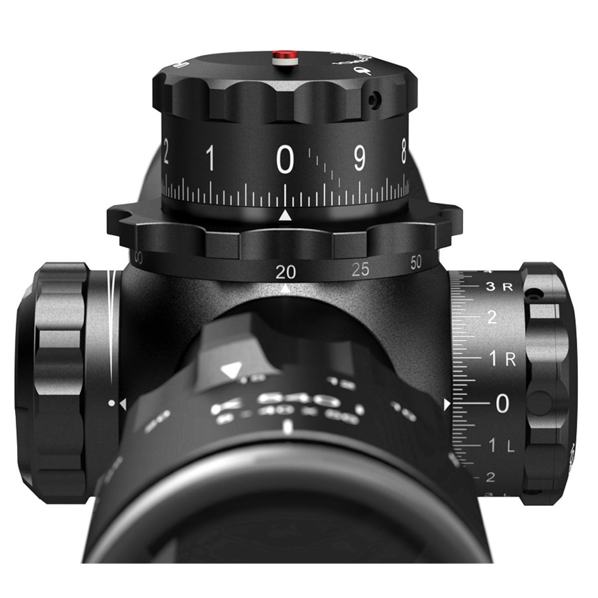 Широкий діапазон збільшення від 5x до 40x дозволяє стрільцю миттєво адаптуватися до будь-яких дистанцій, від середніх до екстремально дальніх. Великий 56-міліметровий діаметр об'єктива гарантує виняткове світлопропускання та формування яскравого, контрастного зображення навіть в умовах низької освітленості. Лінійне поле зору на відстані 100 метрів становить від 10.2 метрів на 5-кратному збільшенні до 1.3 метра на 40-кратному, надаючи відмінний огляд або максимальну деталізацію відповідно. Напрямок регулювання барабанів поправок здійснюється проти годинникової стрілки (CCW). Інноваційна система маркування барабанів EasyRead забезпечує чітке та легко читабельне відображення внесених поправок.