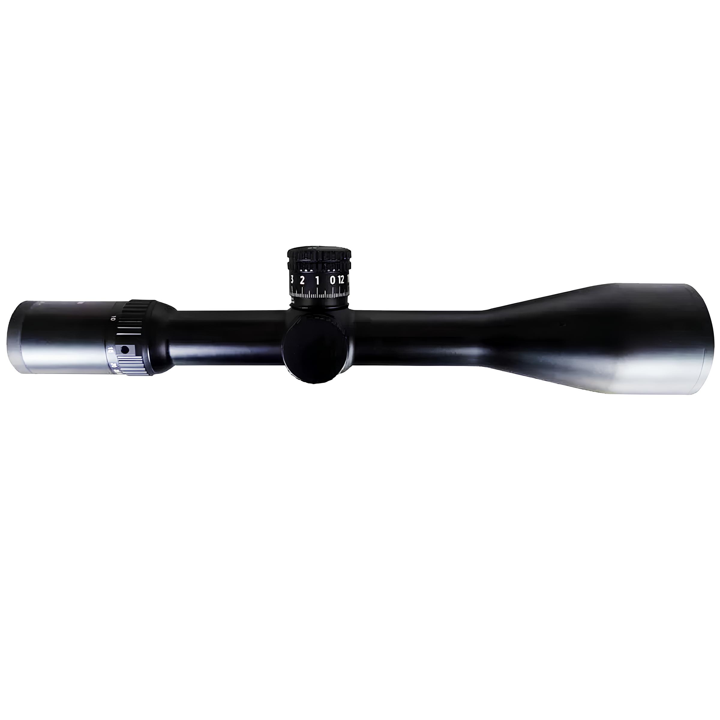 Прицільна сітка Fine Crosshair (надтонке перехрестя) з підсвічуваною червоною точкою розташована у другій фокальній площині, що зберігає її прецизійність на всьому діапазоні кратностей. Регулювання яскравості точки дозволяє пристосуватися до різних умов освітлення. Ціна кліка барабанів становить 1/8 MOA — удвічі точніше за стандарт, що має принципове значення для benchrest та високоточної стрільби. Турелі обладнані механізмами Locking та Zero Stop, а відстройка паралакса винесена на бічний барабан.