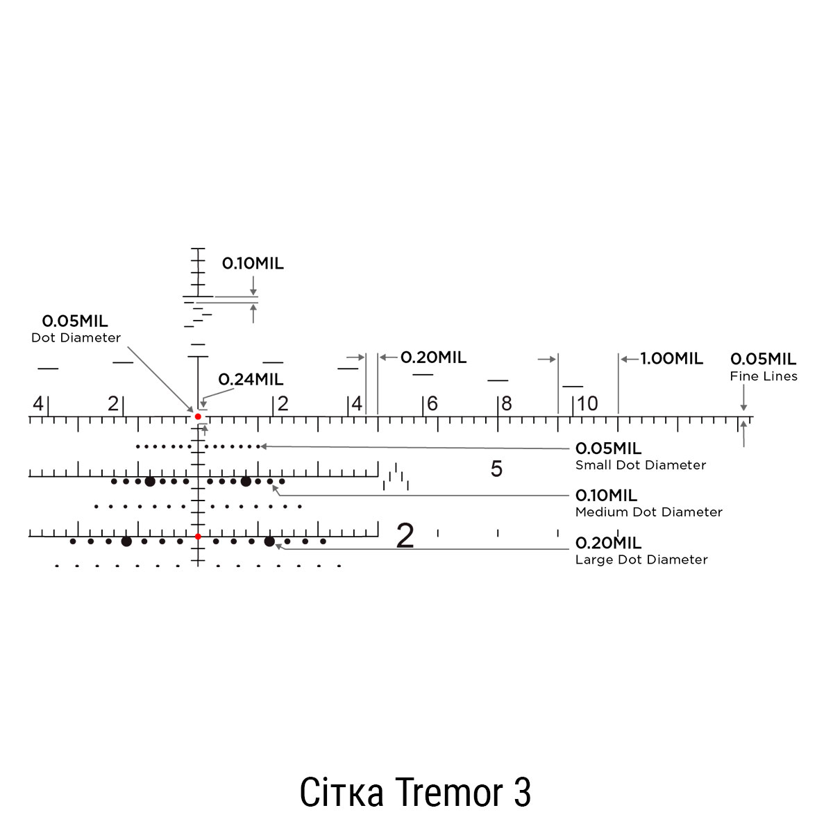 - Тип прицільної сітки: Tremor 3 IR