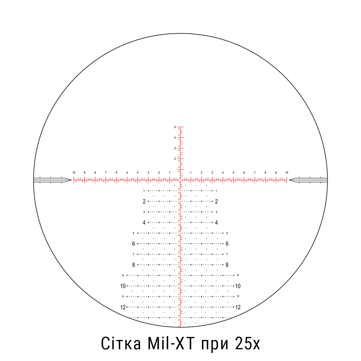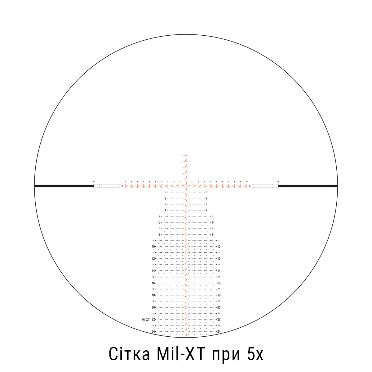 Прицільна сітка Mil-XT™ є розробкою компанії Nightforce та розташована у першій фокальній площині. Основною перевагою такої схеми є те, що поділки на прицільній марці зберігають своє справжнє значення незалежно від збільшення. Сітка спеціально розроблена для високоточної змагальної стрільби на далекі дистанції і дозволяє чітко оцінити ціль. Також застосовується унікальна технологія цифрового підсвічування Digillum™ від виробника, яка надає перевагу у швидкості прицілювання над іншими прицілами у нічний час. Зручна бічна відстройка паралакса (Side Focus) регулюється від 41.1 м і до нескінченності.