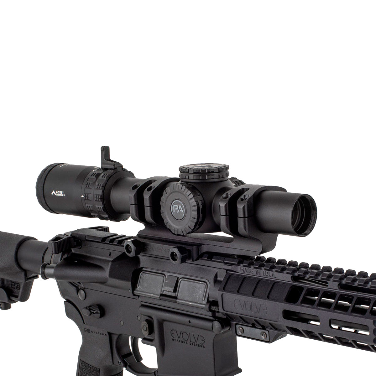 Корпус прицілу Primary Arms GLx 1-6x24 FFP ACSS Griffin Mil M6 IR виготовлений з високоякісного алюмінію та анодований у чорний колір з матовим покриттям. Приціл має спеціальний важіль для швидкого коригування кратності, який зручно та надійно кріпиться до окуляра.