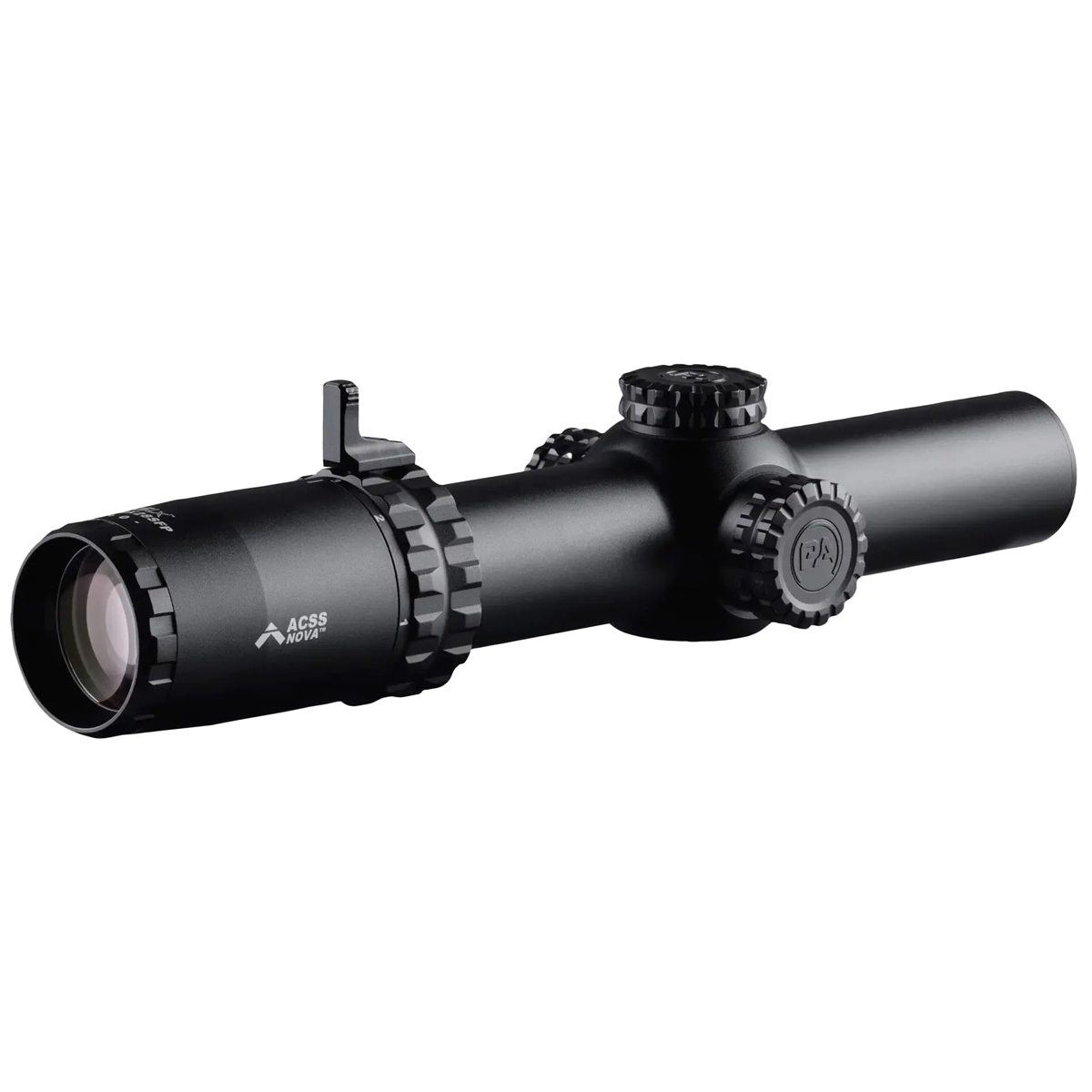 Модель побудована на другій фокальній площині (SFP), що дозволяє зберігати чіткість і розмір прицільної сітки незалежно від рівня збільшення. В прицілі використовується сітка ACSS NOVA з підсвічуванням червоного кольору, яка пропонує швидке захоплення цілі та інтуїтивне наведення. Підсвічування має 11 рівнів яскравості. Широке поле зору на 100 м — від 36.7 до 3.3 метрів (у перерахунку на кутове поле зору 20.9–1.9°) забезпечує комфортне спостереження та впевнений контроль над простором, незалежно від дистанції до цілі.