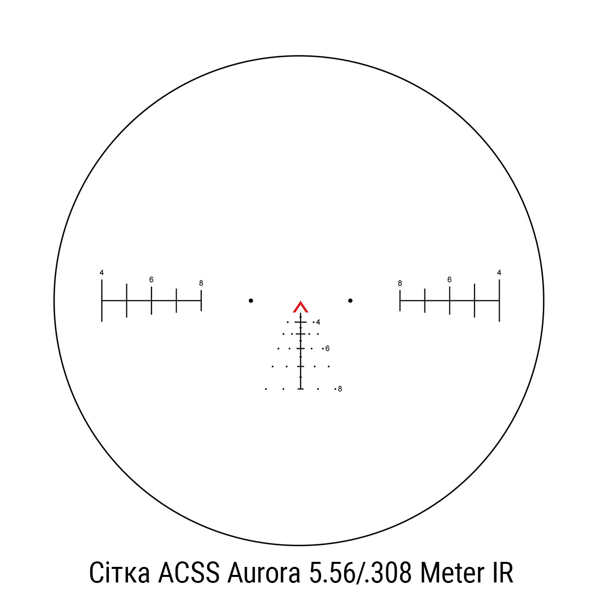 Балістична прицільна сітка ACSS Aurora 5.56/.308 Meter IR розроблена і адаптована спеціально під калібр 5.56/.308, має регульоване підсвічування – 11 рівнів інтенсивності, 2 з яких призначені для використання з приладами нічного бачення.