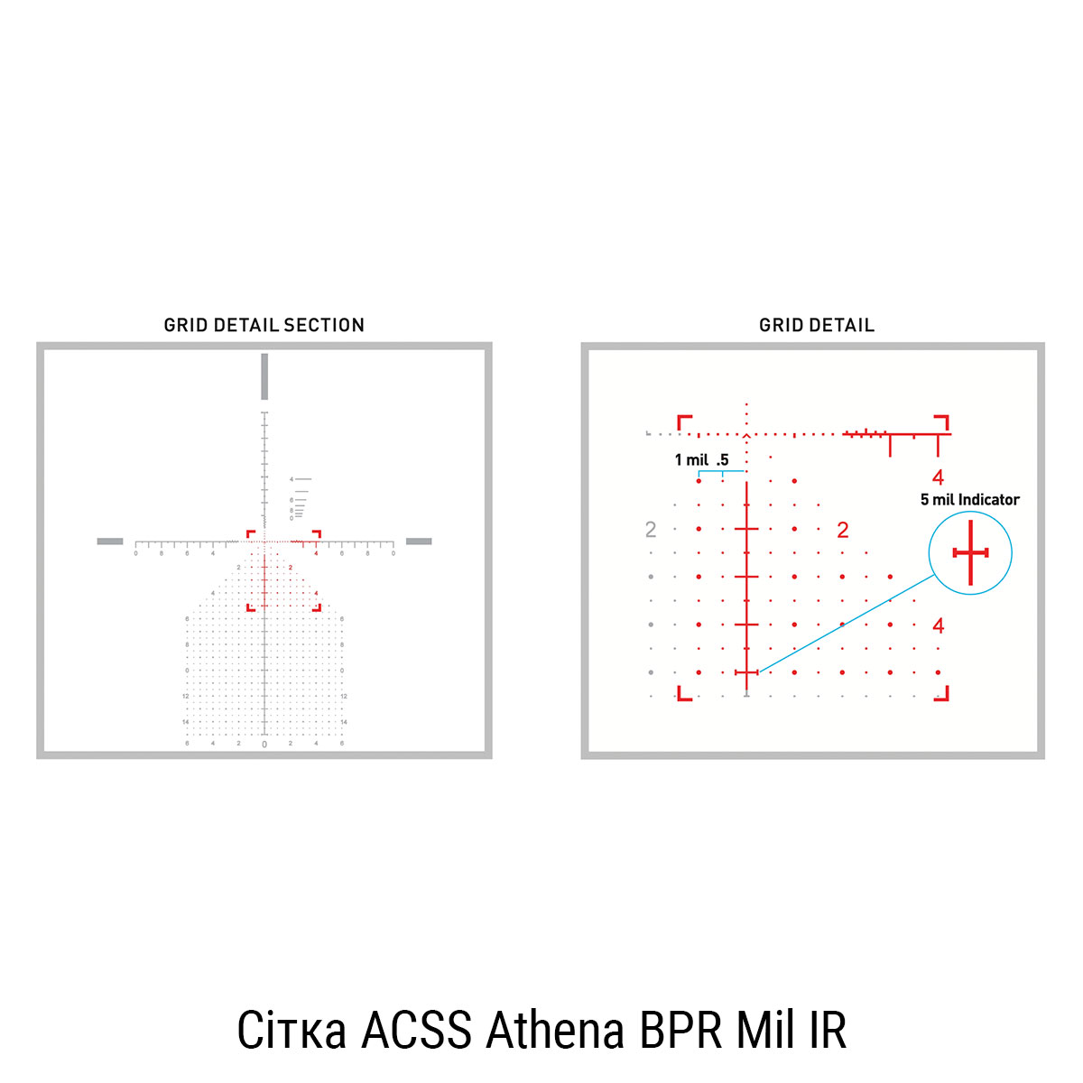 Основна особливість прицілу – це балістична прицільна сітка ACSS Athena BPR Mil, яка розміщена у першій фокальній площині, є однією з найточніших у світі прицільних сіток та призначена для роботи на максимально віддалених відстанях у понад 914 м (1000 ярдів). Додатково прицільна сітка має функцію підсвічування з 6 рівнями регулювання яскравості з можливістю вимкнення на проміжних значеннях.