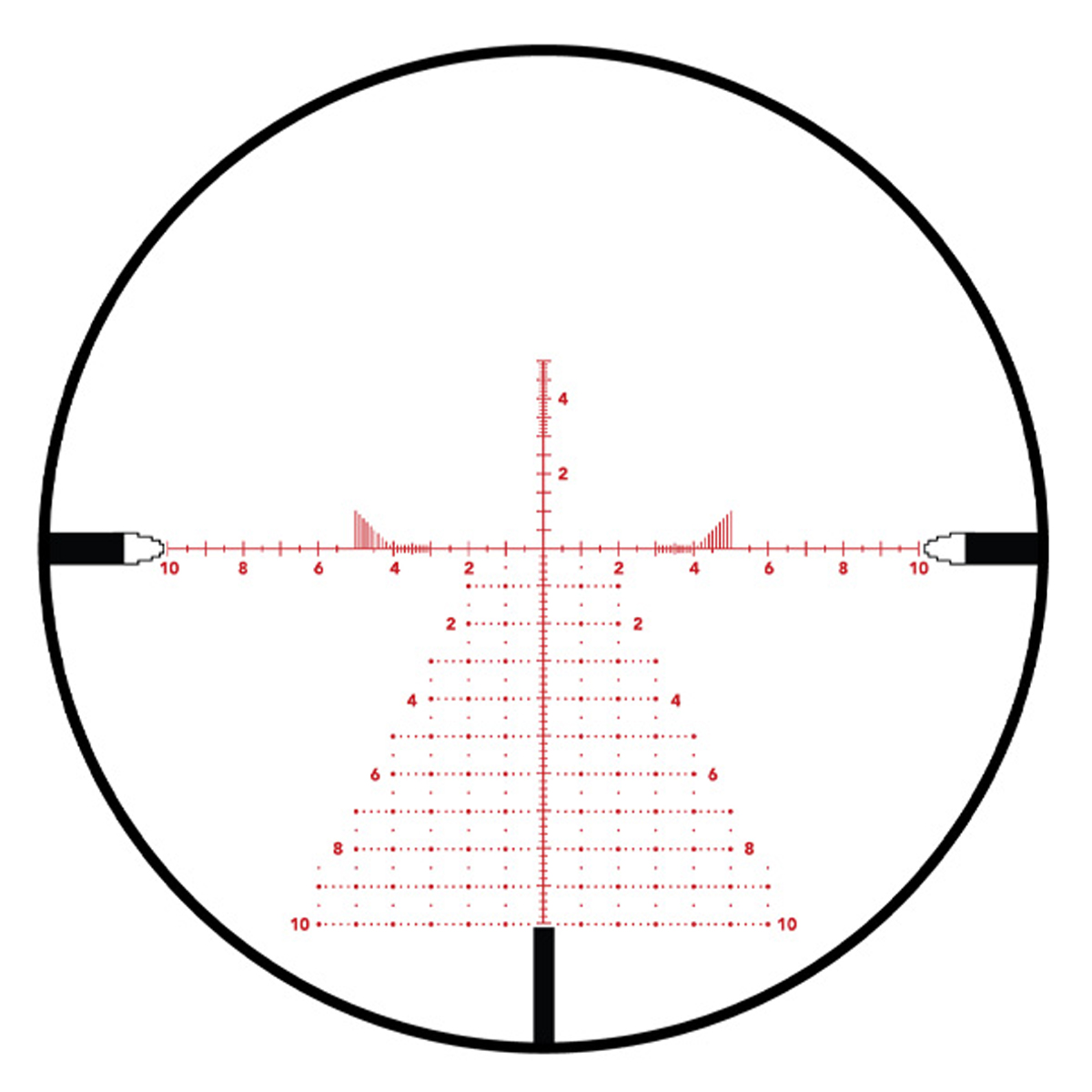 Розташування прицільної сітки у першій фокальній площині (FFP) є ключовою перевагою для стрільців на далекі дистанції, адже її кутові розміри залишаються незмінними відносно цілі при будь-якому збільшенні. Приціл оснащений балістичною сіткою MRAD DEV-L з яскравою підсвіткою. Система підсвічування Hellfire™ має 7 денних налаштувань яскравості та 2 режими, сумісні з приладами нічного бачення. Технологія MOTAC™ (Motion Activated Illumination) автоматично вмикає підсвітку при виявленні руху та вимикає її у стані спокою, суттєво заощаджуючи заряд батареї. Високоточні тактичні барабанчики оснащені системою LockDown Zero System, яка надійно блокує налаштування та дозволяє миттєво повертатися до пристріляного нуля. Додатковою перевагою є система балістичних турелей SBT (SIG Ballistic Turret), що дозволяє створювати індивідуальні налаштування під конкретний боєприпас та гвинтівку.