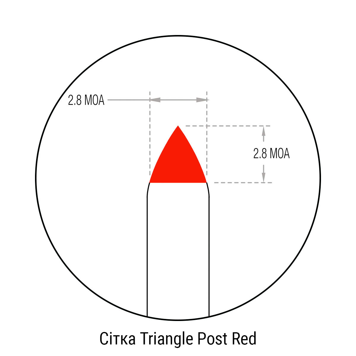 Прицільна сітка у вигляді трикутника розташована у другій фокальній площині, та забезпечує максимально просте наведення на ціль і високу точність влучання в ціль.