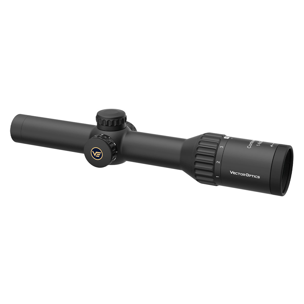 Vector Optics Continental x6 1-6x24 (SFP, G4 IR, 30 мм) – це ширококутний (23° при 1х) приціл загінного типу, який може встановлюватися на карабіни різного типу. Має балістичну прицільну сітку G4 для швидкого і точного наведення на ціль. Сітка розміщена у другій фокальній площині, має підсвічування червоного кольору з 6 рівнями яскравості.