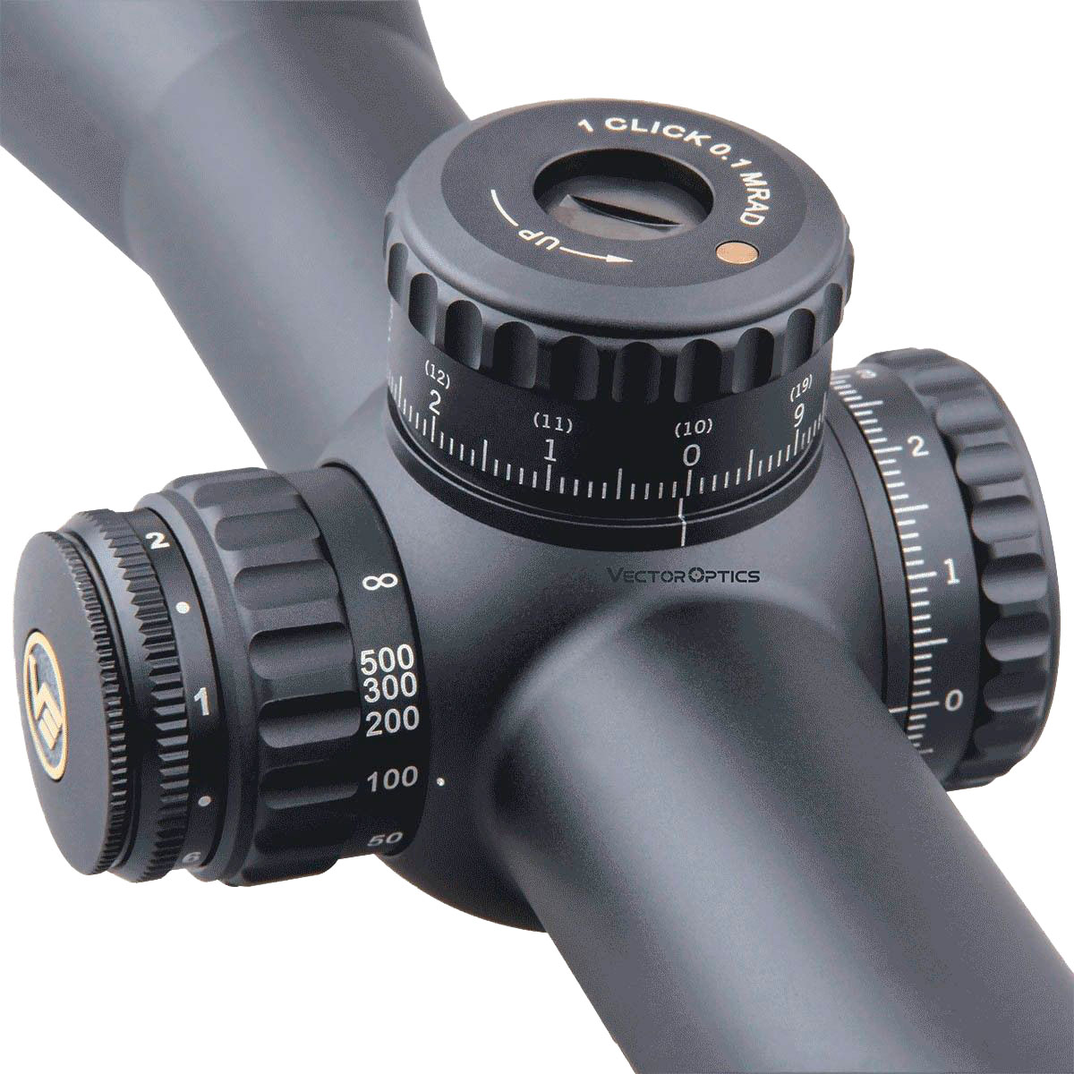 Барабани введення поправок виготовлені з авіаційного алюмінію 7075 T6, мають систему Zero-Stop та забезпечують максимально чіткий хід кожного оберту. Максимальний діапазон регулювання висоти складає 26 MIL, а вітру – 16 MIL. Крок введення поправок – 1/10 MIL (100 клацань за оберт).