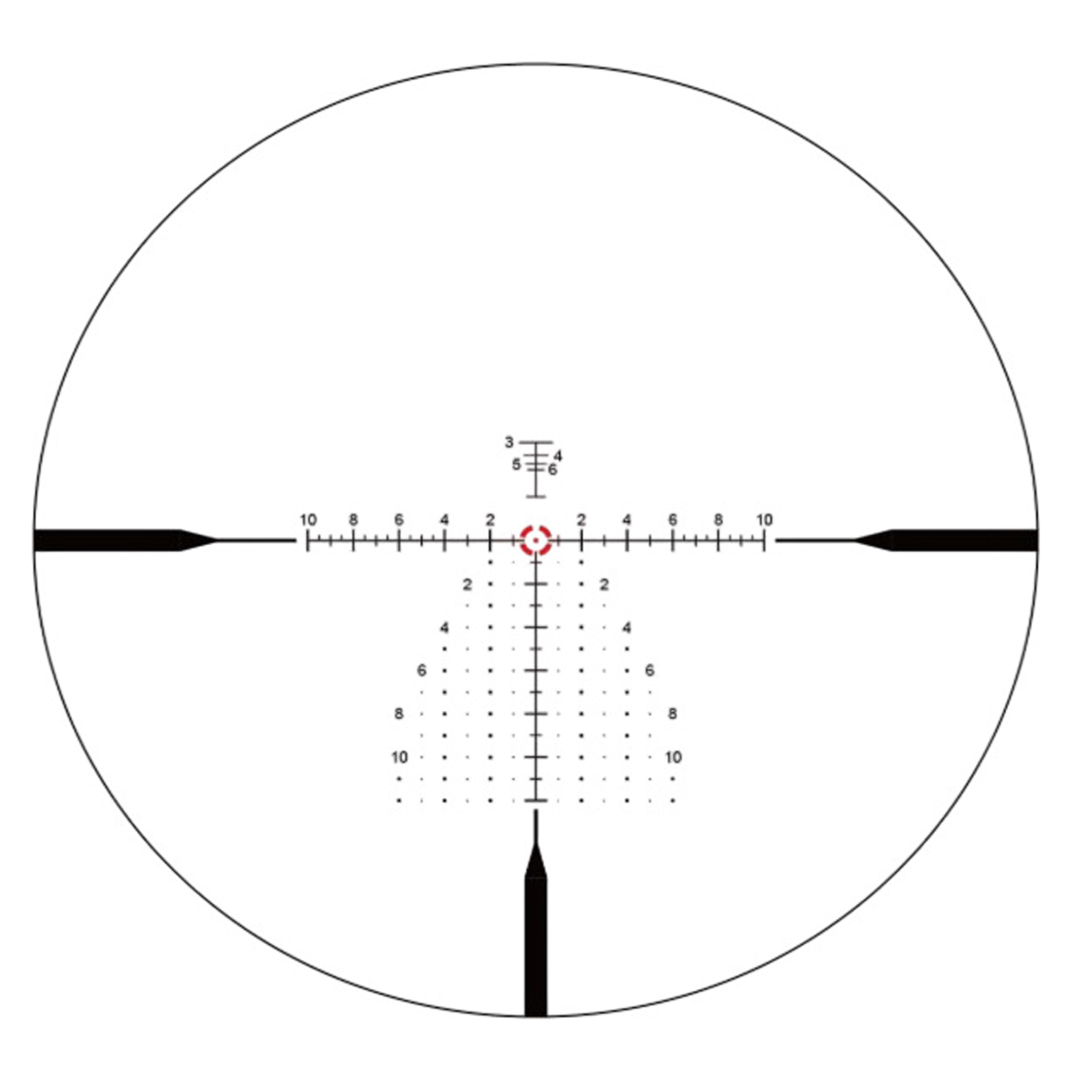 Механізм введення поправок прицілу відповідає найвищим тактичним стандартам. Діапазон регулювання по вертикалі та горизонталі становить понад 30 MIL, надаючи запас для стрільби на великі дистанції. Ціна одного кліку тактичних барабанів складає 1/10 MIL (0.1 MRAD). Барабани оснащені функціями Turret Lock (блокування від випадкового зсуву) та Zero Stop (швидке та точне повернення до пристрілювального нуля). Передбачена корекція діоптрій в діапазоні від -2 до +2. Прицільна сітка має 11 рівнів яскравості підсвічування, яка живиться від батарейки CR2032, для оптимальної видимості за будь-яких умов освітлення.