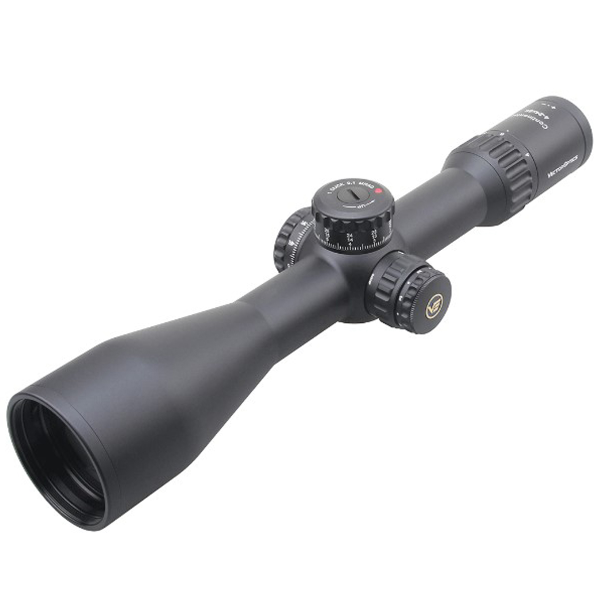 Гравійована на склі прицільна сітка VEC-MBR розташована в першій фокальній площині (FFP). Це означає, що розмір сітки масштабується разом зі зміною кратності, залишаючи кутові розміри поправок актуальними на будь-якому збільшенні. Для комфортної роботи на темному тлі передбачено центральне підсвічування перехрестя червоного кольору з 6 рівнями інтенсивності, дозволяючи адаптувати яскравість під поточні умови. Тактичні барабани введення поправок оснащені системами Zero Stop (миттєве повернення до пристрілювального нуля) та Turret Lock (фіксація барабана), це виключає випадкове збивання налаштувань під час транспортування або активного пересування.