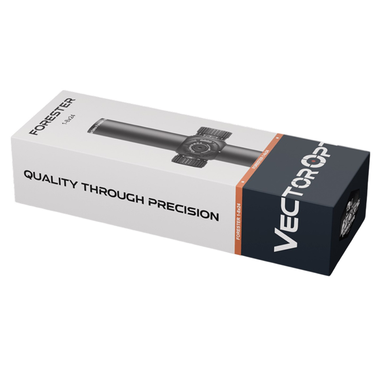 Оптичний приціл Vector Optics Forester 1-8X24 — це якісний прилад, розроблений спеціально для мисливців та стрільців, які потребують надійного та гнучкого інструменту для стрільби на короткі та середні дистанції. Завдяки діапазону збільшення від 1x до 8x, він дозволяє миттєво адаптуватися до умов полювання в лісі, на загінних полюваннях або на відкритій місцевості. На 1x кратності він працює як коліматор, забезпечуючи швидке наведення з двома відкритими очима, а на 8x – дозволяє робити точні постріли на значній відстані. Об'єктив діаметром 24 мм та лінзи з повним багатошаровим просвітленням (Fully Multi-coated) гарантують яскраве та чітке зображення.