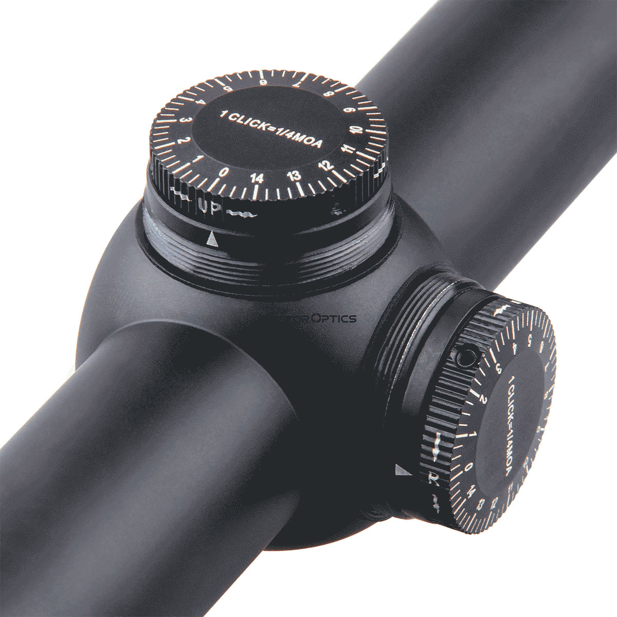 Барабани введення поправок мають знімні захисні кришки, які добре захищають налаштування поправок під час переміщення з позиції на позицію або під час активного полювання. Діапазон регулювання по горизонталі та вертикалі складає по 60 MOA. Ціна поділки регулювання механізму поправок – 1/4 MOA.