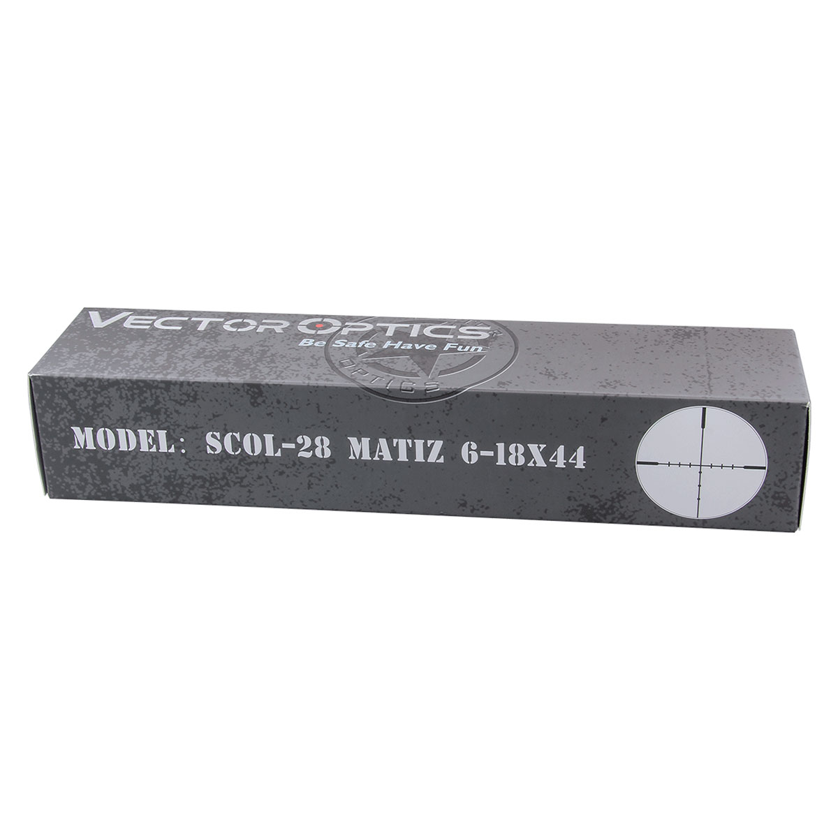 Оптичний приціл Vector Optics Matiz 6-18x44 (VOW-10BDC) має регульоване збільшення у діапазоні від 6х до 18х, об'єктив 44 мм, прицільну сітку без підсвічування у другій фокальній площині у вигляді перехрестя з BDC-мітками, трубку діаметром 25.4 мм та механізм відстройки паралакса на об'єктиві (AO). Дана модель чудово підійде для стрільби на середніх та віддалених відстанях.
