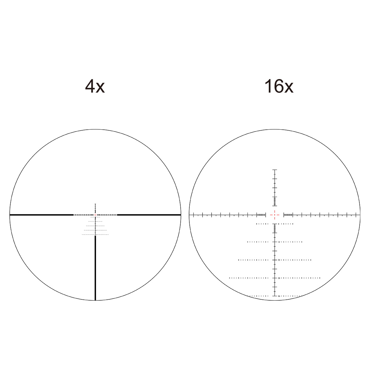Прицільна сітка VSE-3 MOA, розташована на першій фокальній площині (FFP), гарантує незмінні розміри незалежно від обраного збільшення, що робить її надзвичайно зручною для швидкого визначення відстані та введення поправок. Шість рівнів червоного підсвічування сітки дають змогу комфортно працювати в умовах низької освітленості, а функція Zero Stop гарантує миттєве повернення до нульової точки після введення поправок.