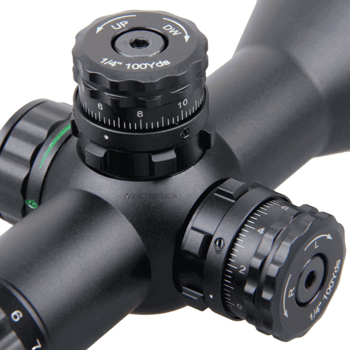 Лінзи мають повне багатошарове просвітлення (Fully multi-coated) та формують якісне зображення цілі. Барабани введення поправок мають чіткий хід та клацання від час зміни параметрів. Максимальний діапазон регулювання висоти та вітру складає по 120 MOA, крок механізму – 1/4 MOA.
