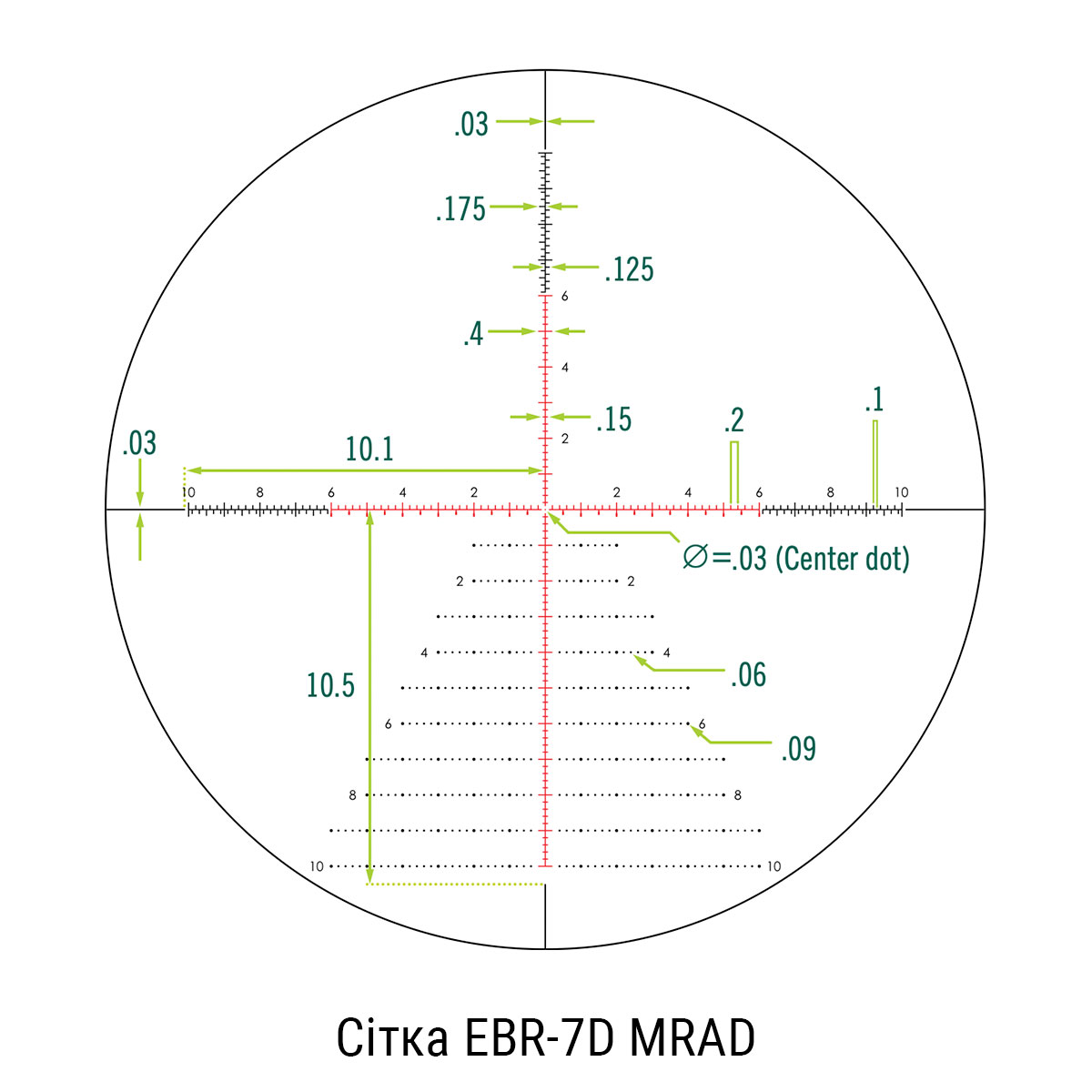 - Тип прицільної сітки: EBR-7D (MRAD)