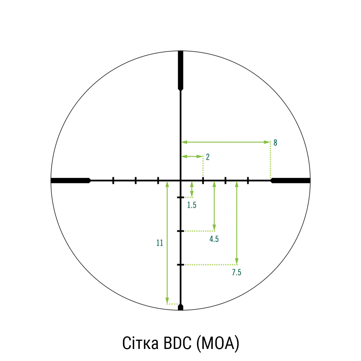- Тип прицільної сітки: Dead-Hold BDC (MOA)