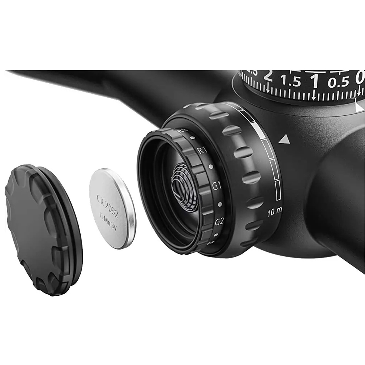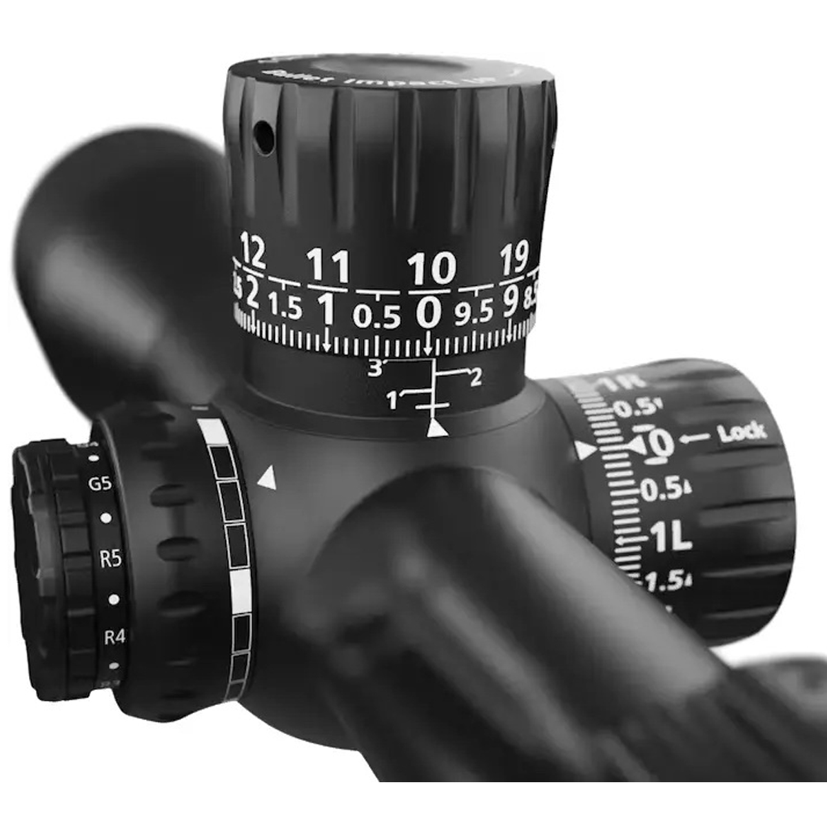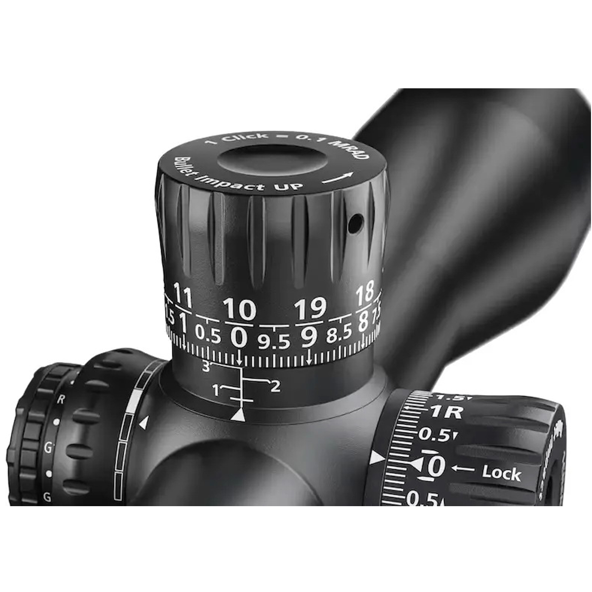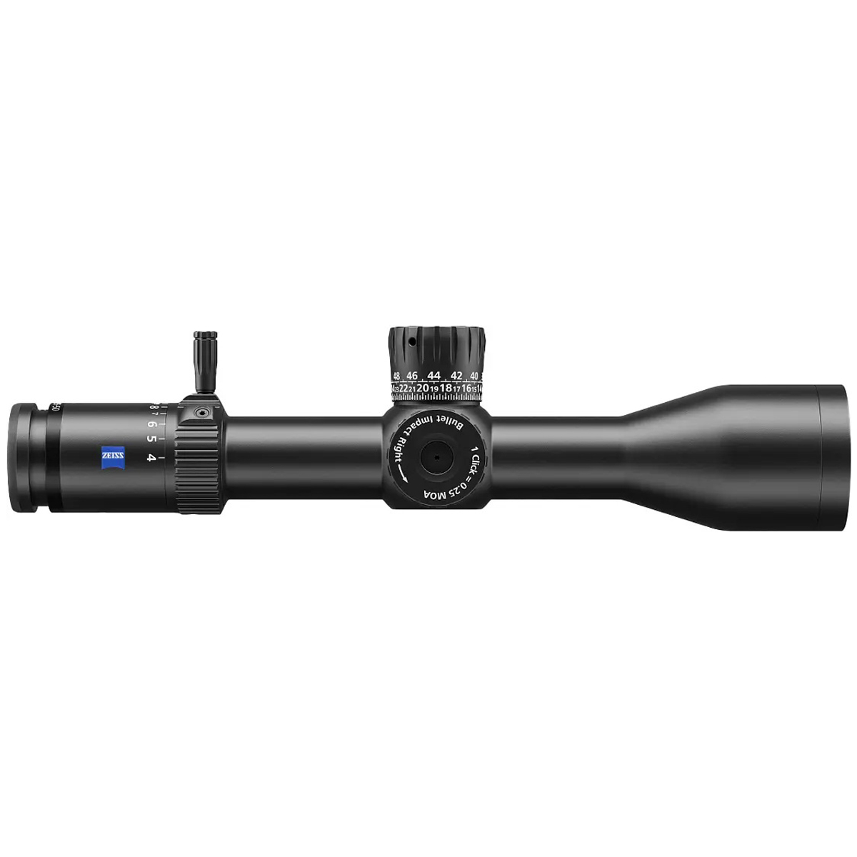 Центральним елементом взаємодії з прицілом є тактична сітка ZF-MRi з регульованим підсвічуванням центральної точки. Її продуманий дизайн з тонкими лініями та чіткими мітками не перевантажує поле зору та дозволяє швидко й точно визначати відстань до цілі, а також вносити поправки на вітер і падіння кулі. Комфортне спостереження забезпечується діаметром вихідної зіниці, що варіюється від 7.1 мм на мінімальному збільшенні до 2 мм на максимальному. Поле зору на дистанції 100 метрів становить від 9.5 до 1.6 метрів (або 5.4° – 0.9° в кутових величинах), дозволяючи ефективно контролювати простір навколо цілі. Значне віддалення вихідної зіниці в діапазоні 80-90 мм гарантує безпеку при стрільбі з потужних калібрів. Тактичні турелі оснащені функціями Ballistic Stop для швидкого повернення до нуля та External Locking Windage Turret (ELWT) для блокування барабана горизонтальних поправок, що запобігає випадковим змінам налаштувань.