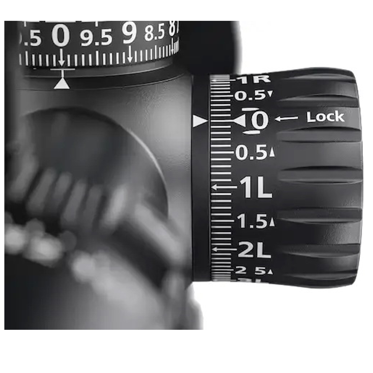 Механізм відбудови паралакса дозволяє досягти ідеальної чіткості зображення цілі та сітки на будь-якій дистанції, починаючи з 15 метрів і до нескінченності. Запас поправок по вертикалі становить 160 MOA, а по горизонталі — 60 MOA. Такий великий хід поправок дозволяє працювати на екстремальних дистанціях без використання спеціальних кріплень з нахилом. Ціна одного кліка барабанів складає 1/4 MOA, надаючи високу точність пристрілки та внесення корекцій. Чіткі, тактильно відчутні кліки роблять процес налаштування швидким та інтуїтивно зрозумілим навіть у рукавичках. Для індивідуальної адаптації під зір стрільця передбачена функція корекції діоптрій в діапазоні від +3 до -3.