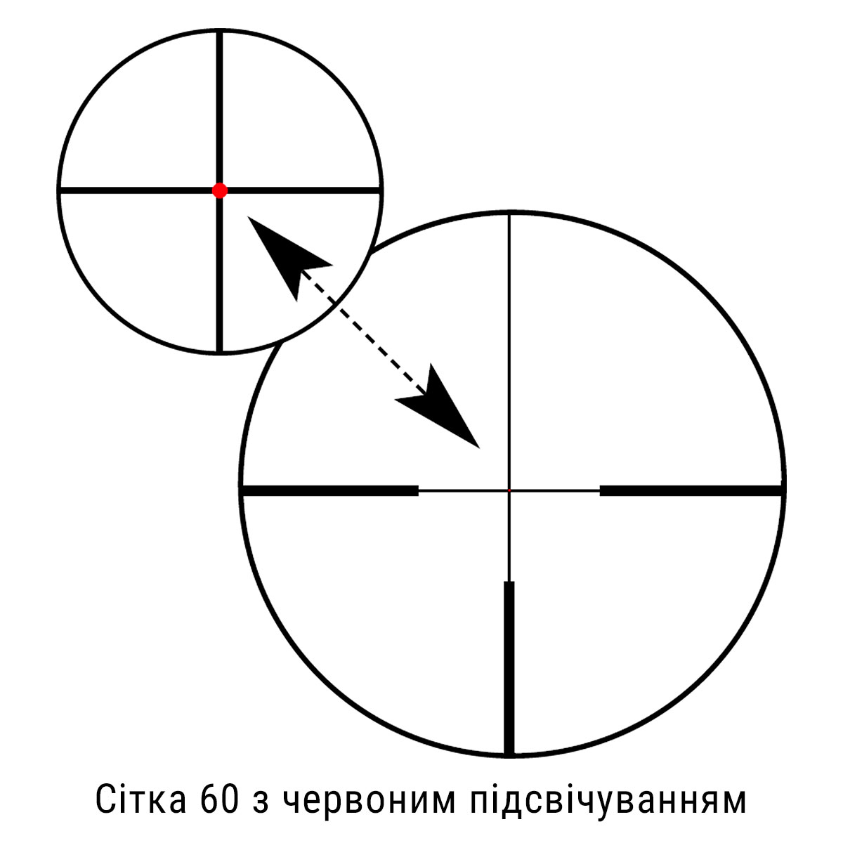 - Підсвічування прицільної сітки: присутнє (яскраво-червоне)