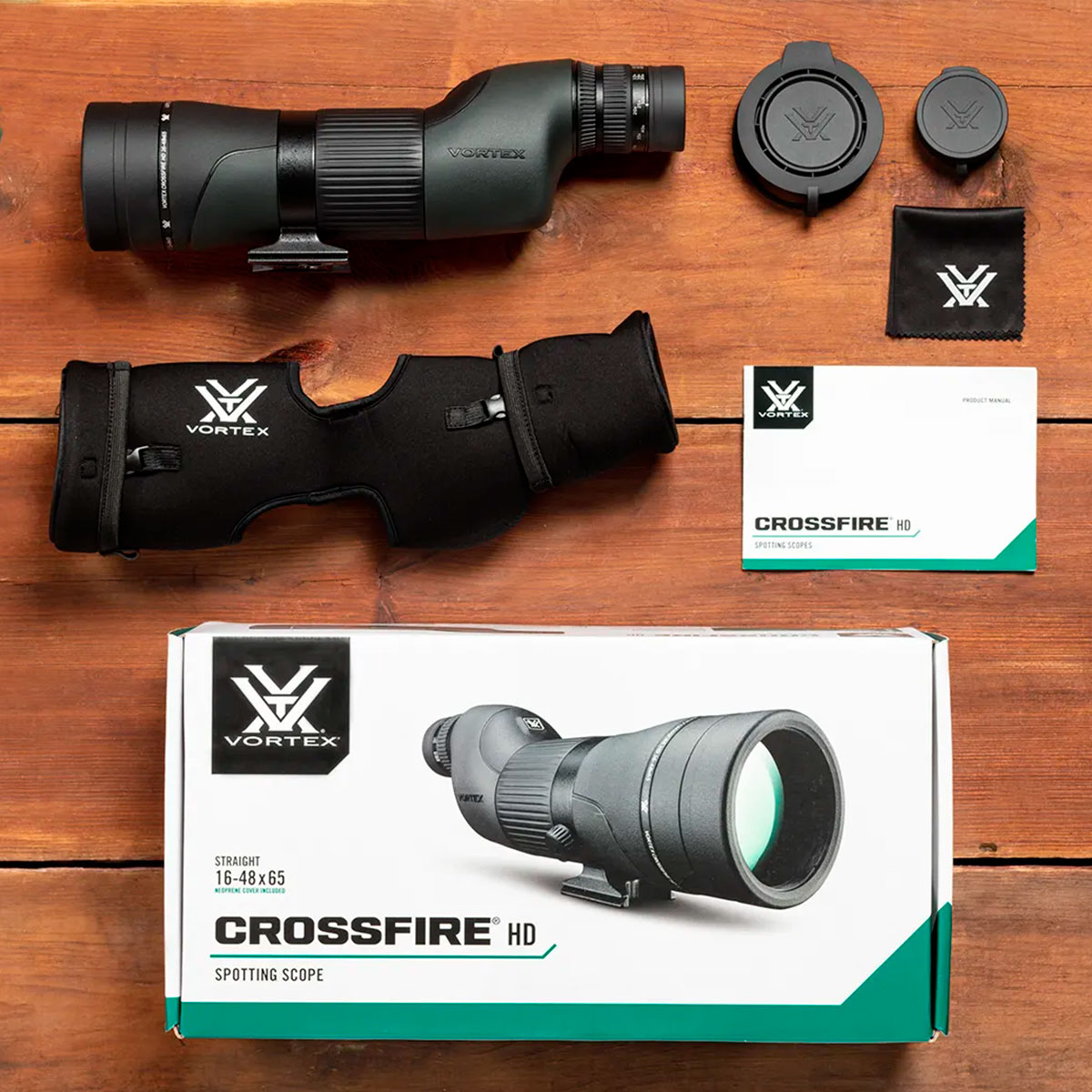Vortex Crossfire HD 16-48x65 ST – потужна та захищена підзорна труба змінної кратності від американського бренду преміум-класу. Виробник позиціонує цю модель як мисливську, що дозволяє вивчати цілі на екстремальній відстані в найдрібніших деталях. За це відповідає якісна оптика з високою роздільною здатністю (Diamondback HD), яка видає чудове зображення навіть в умовах низької освітленості. Труба може встановлюватися на штативи різних типів для проведення тривалого спостереження за статичними об'єктами. В цілому дана модель досить універсальна і здатна охопити більшість основних завдань спостереження.