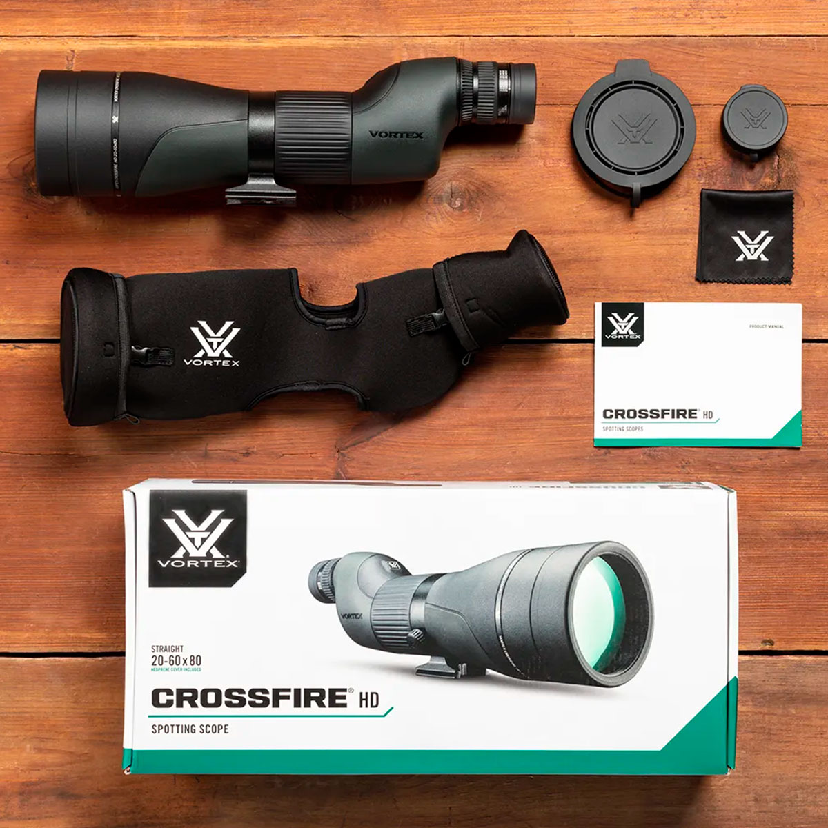 Vortex Crossfire HD 20-60x80 ST – потужна та захищена підзорна труба змінної кратності від американського бренду преміумкласу. Виробник позиціонує цю модель як мисливську, що дозволяє вивчати цілі на екстремальній відстані в найдрібніших деталях. За це відповідає якісна оптика з високою роздільною здатністю (Diamondback HD), яка видає чудове зображення навіть в умовах низької освітленості. Труба може встановлюватися на штативи різних типів для проведення тривалого спостереження за статичними об'єктами. В цілому дана модель досить універсальна і здатна охопити більшість основних завдань спостереження.