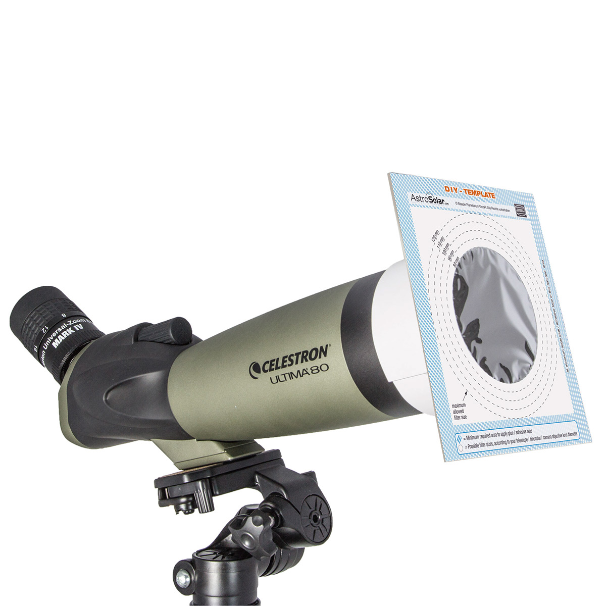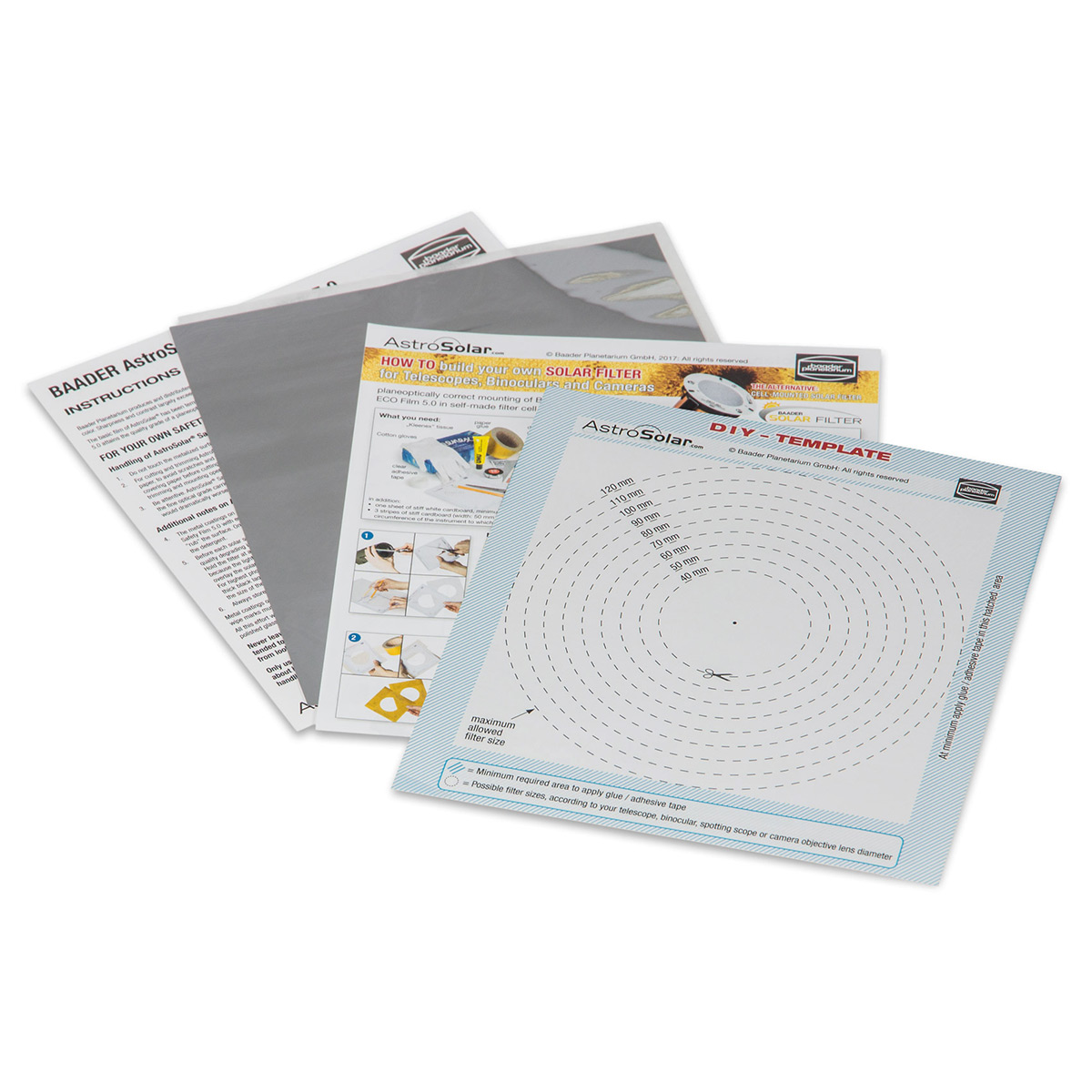 Компактний розмір плівки 140 x 155 мм підходить для використання з невеликими телескопами, біноклями або об'єктивами камер. Для виготовлення сонячного фільтра достатньо одного шару плівки.