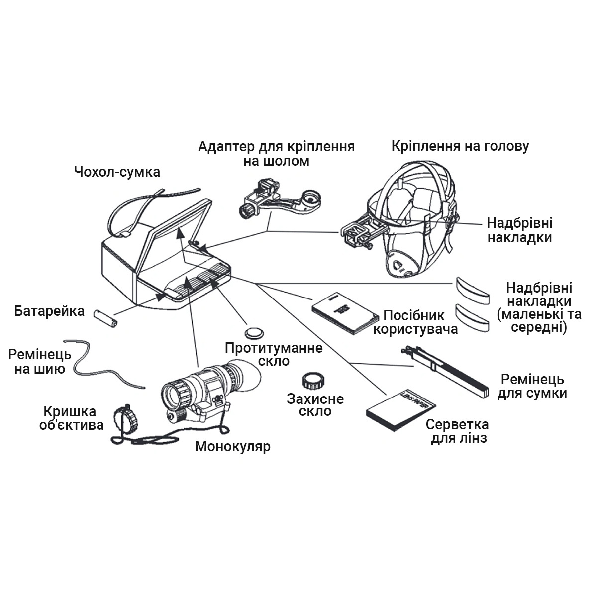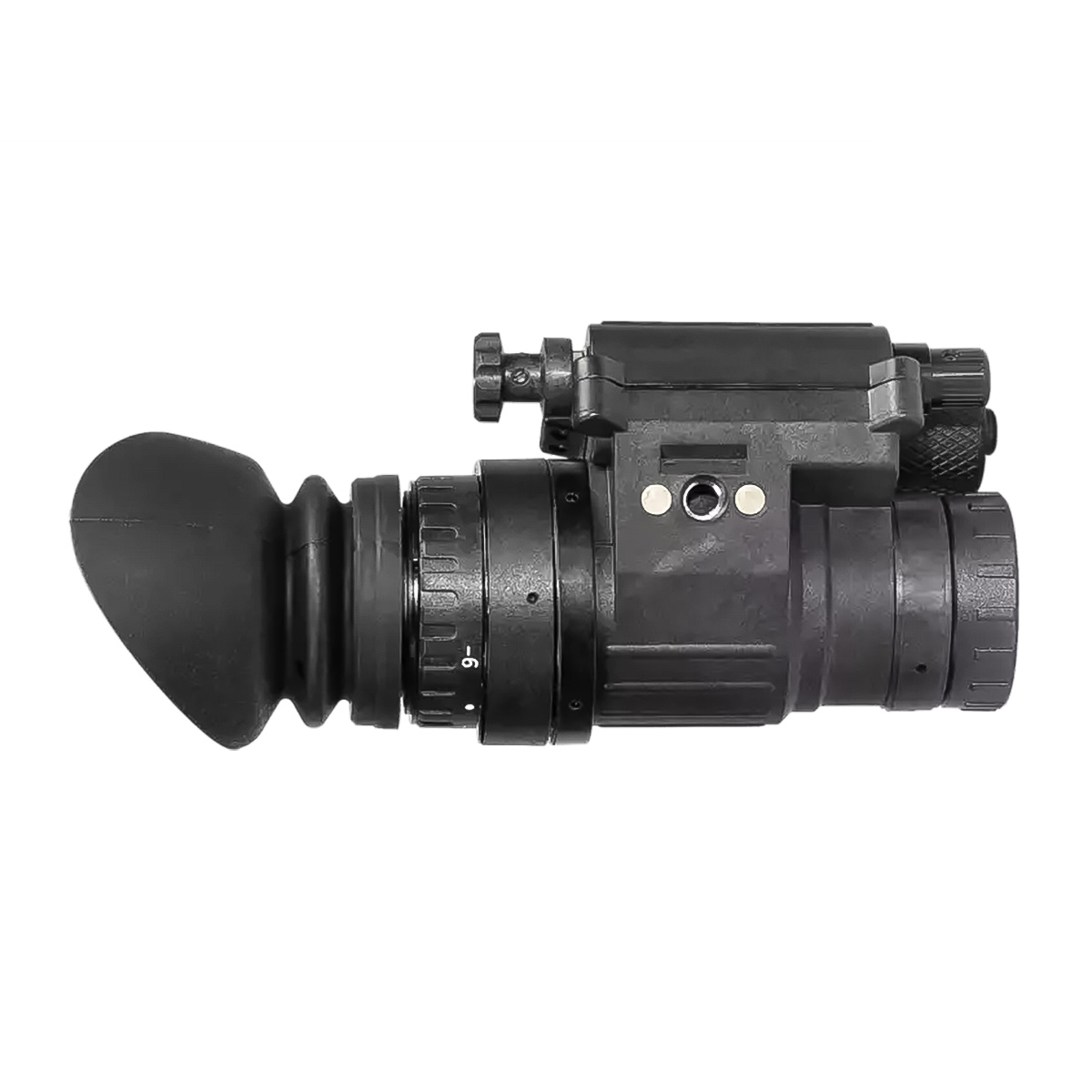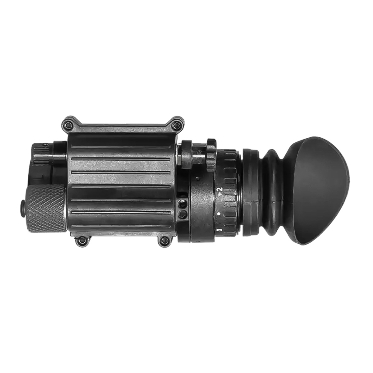 Монокуляр з 1х збільшенням не спотворює пропорції об'єктів, а кут огляду 40° забезпечує максимальну ситуаційну обізнаність. За бажанням, можливе встановлення додаткових лінз із 3x та 5x кратністю. Вбудований ІЧ-освітлювач з розсіяним світлом дозволяє працювати з документами або картами без необхідності знімати прилад.