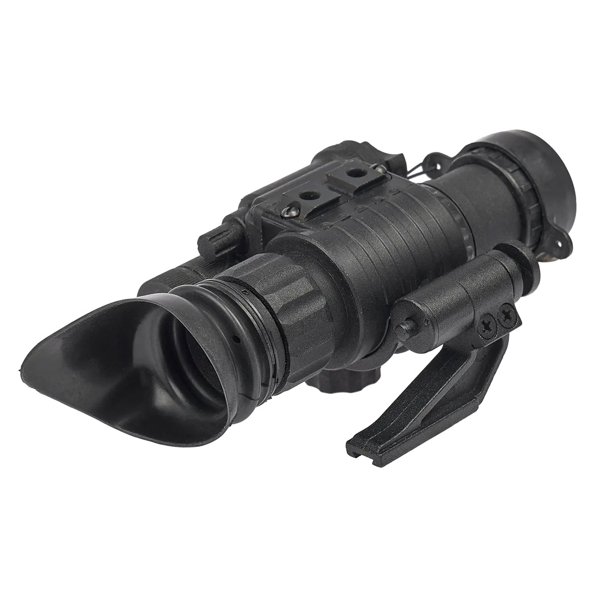 У комплекті постачається гарнітур із відкидним кріпленням для вільного користування монокуляром без рук, а також забезпечене спеціальне кріплення для встановлення приладу на шолом, зброю або камеру. У положенні пристрою під нахилом в бік доступна функція автоматичного вимкнення.