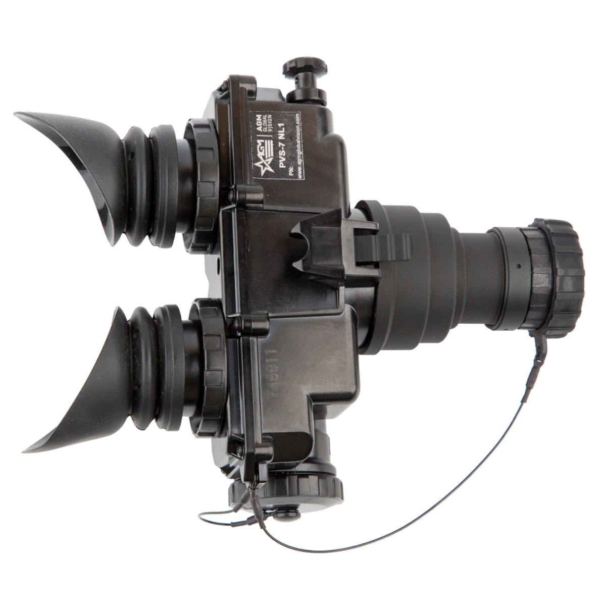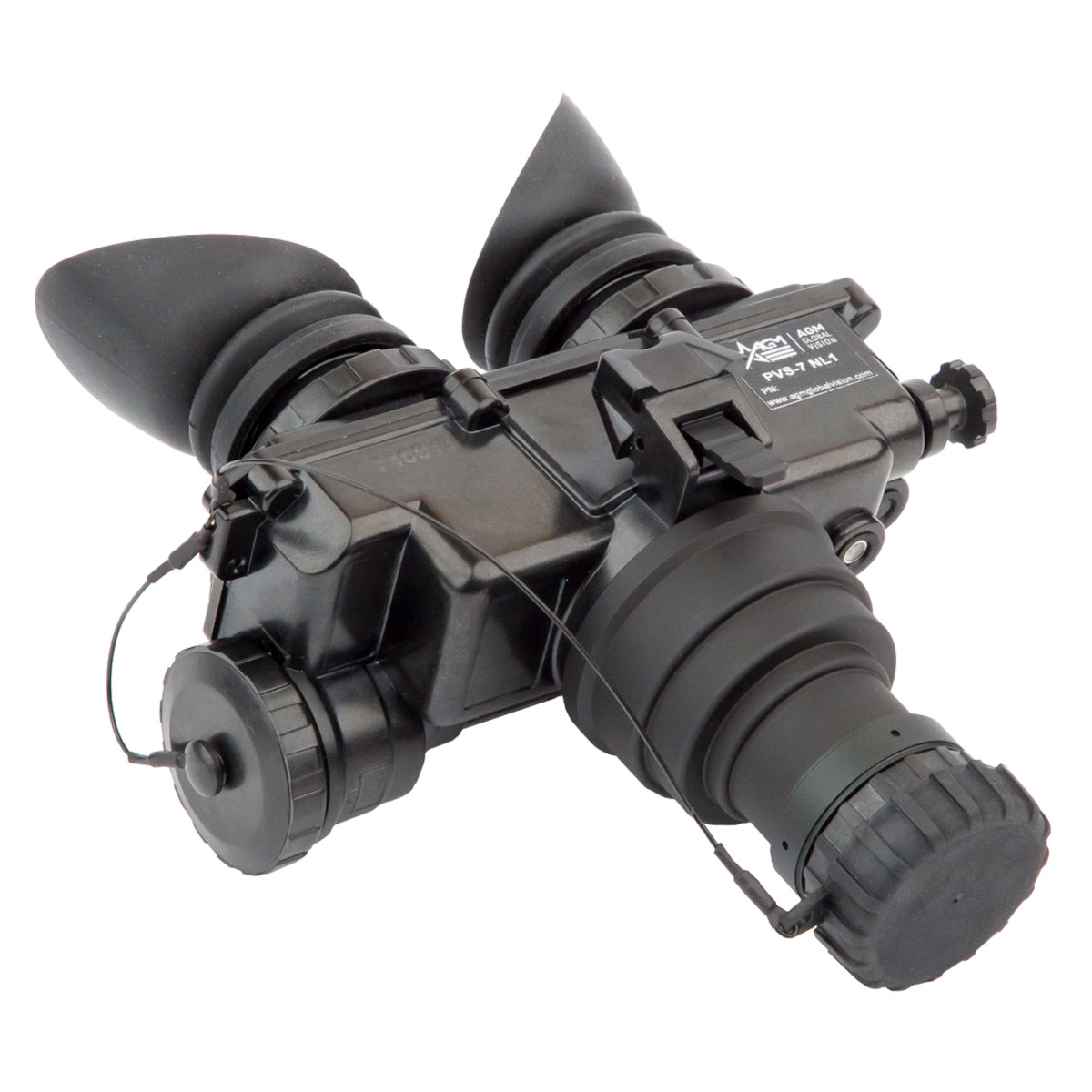 Нічні окуляри AGM PVS-7 NL1 виконані у міцному полімерному корпусі та розроблені згідно усіх стандартів міністерства оборони США. Корпус захищений за стандартом IP65 (захист від пилу та вологи). Джерелом живлення виступають два акумулятори типу AA (або один Lithium BA-5567/U), від яких прилад може працювати до 60 годин.