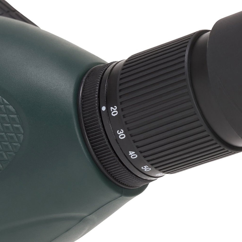Наведення різкості труби Highlander 20-60x60 здійснюється у два етапи. Маховик грубого фокусування служить для швидкого наведення на ціль, а для точного наведення застосовується розташоване поруч кільце точного фокусування. Мінімальна дистанція, при якій можна чітко розглянути об'єкт, становить 8 м. Використовуючи поворотно-висувний наочник, можна вибрати індивідуально комфортну відстань між оком та лінзою окуляра.