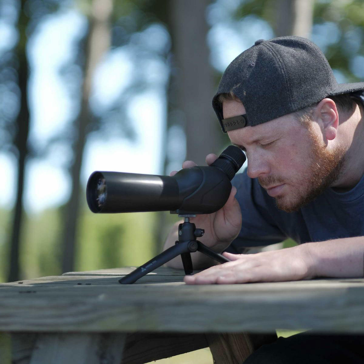 Включений в комплект алюмінієвий міні-штатив забезпечує стабільний перегляд в будь-якій ситуації. Крім того, його компактність дозволяє розмістити штатив в загальному чохлі з підзорною трубою.