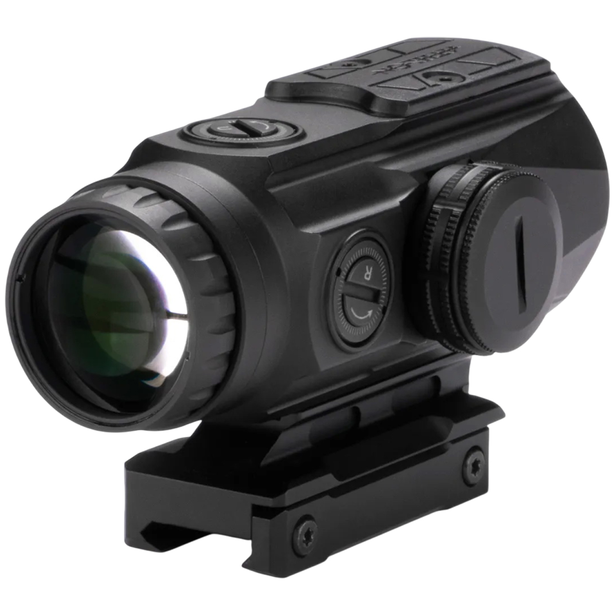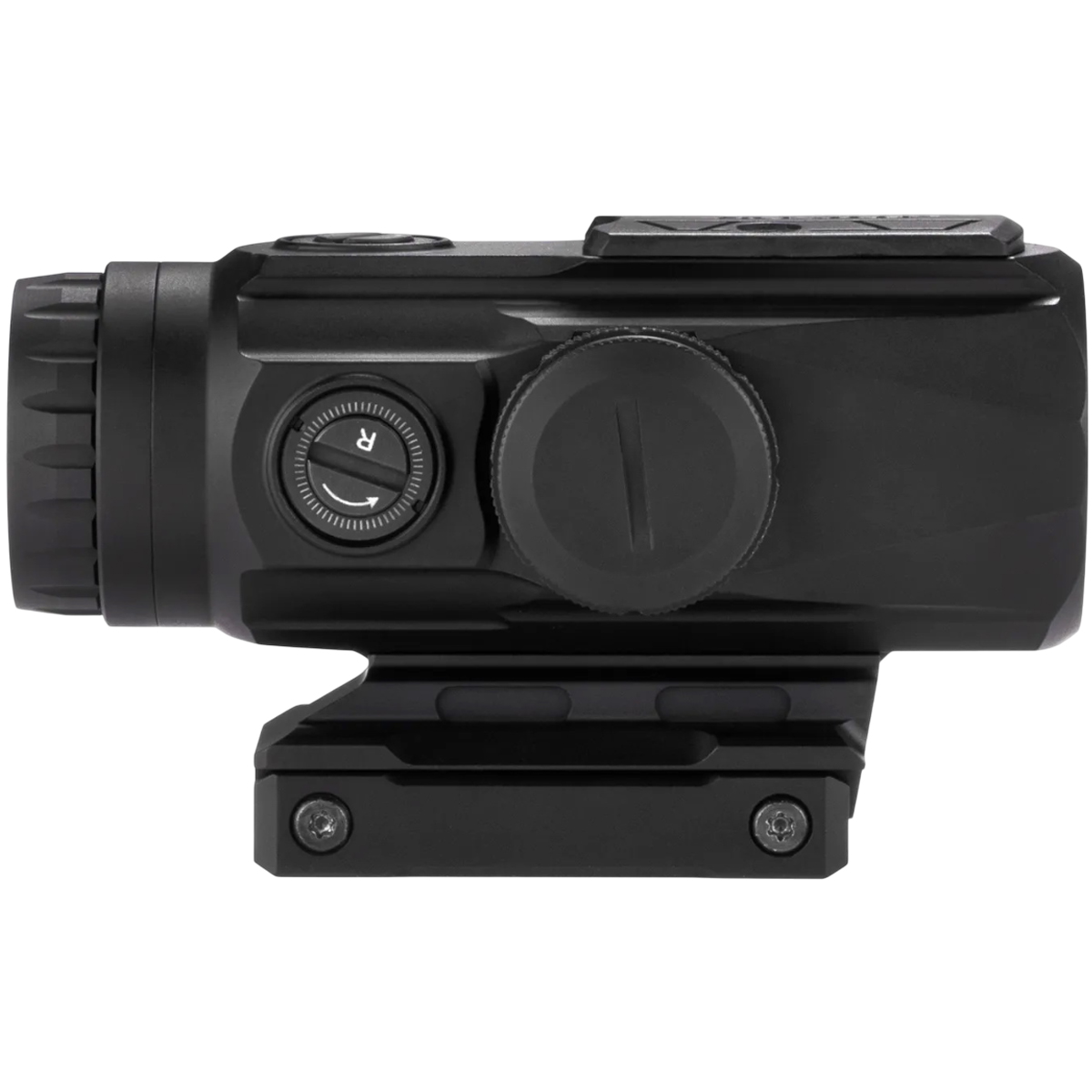 Прицільна сітка APX3 витравлена на склі та залишається помітною навіть без увімкненої підсвітки, що гарантує повну автономність у разі розрядження батареї. Сітка включає розмічення та центральну точку 2 MOA — такий розмір є оптимальним компромісом між швидким захопленням близьких цілей та високою точністю на збільшених дистанціях. Для універсальності роботи в різних умовах освітлення прилад має подвійну підсвітку: доступні червоний та зелений кольори. Кожен із них пропонує 12 рівнів інтенсивності, з яких 10 призначені для денного застосування, а 2 мінімальні рівні — сумісні з ПНБ. Крім того, приціл оснащений функцією автоматичного вимкнення підсвітки після тривалого періоду без активності, дозволяючи економити ресурс батареї.