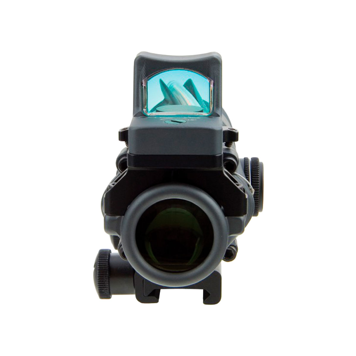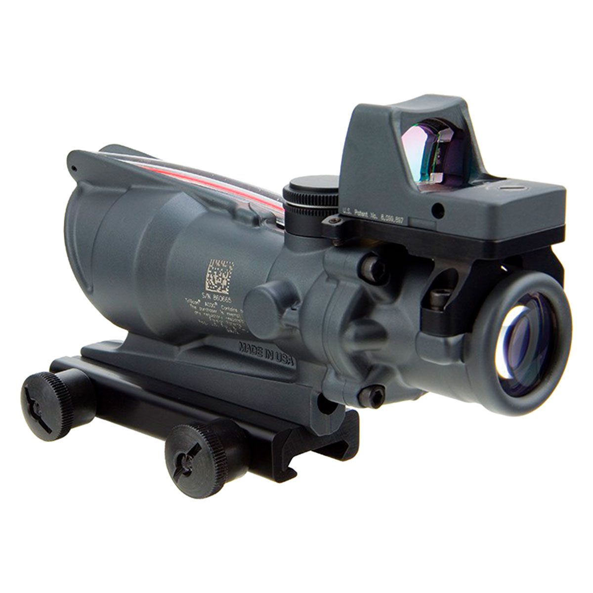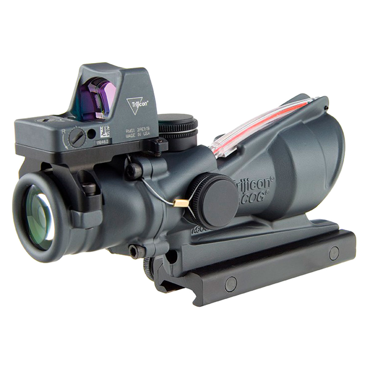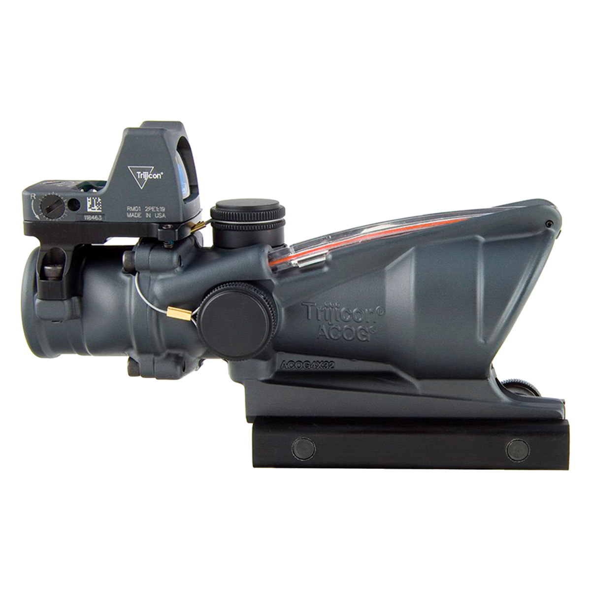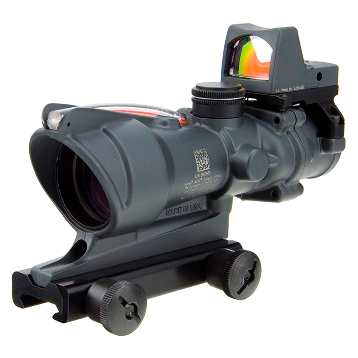 Trijicon ACOG 4x32 .223 Red Chevron (призматичний, Gray) + коліматор Trijicon RMR Type 2 (Dot 3.25 MOA, Gray) – преміальний комплект призматичного прицілу та світлодіодного коліматора відкритого типу для тактичної роботи на невеликих відстанях зі стійкою віддачою зброї від .22 LR до .50 BMG.