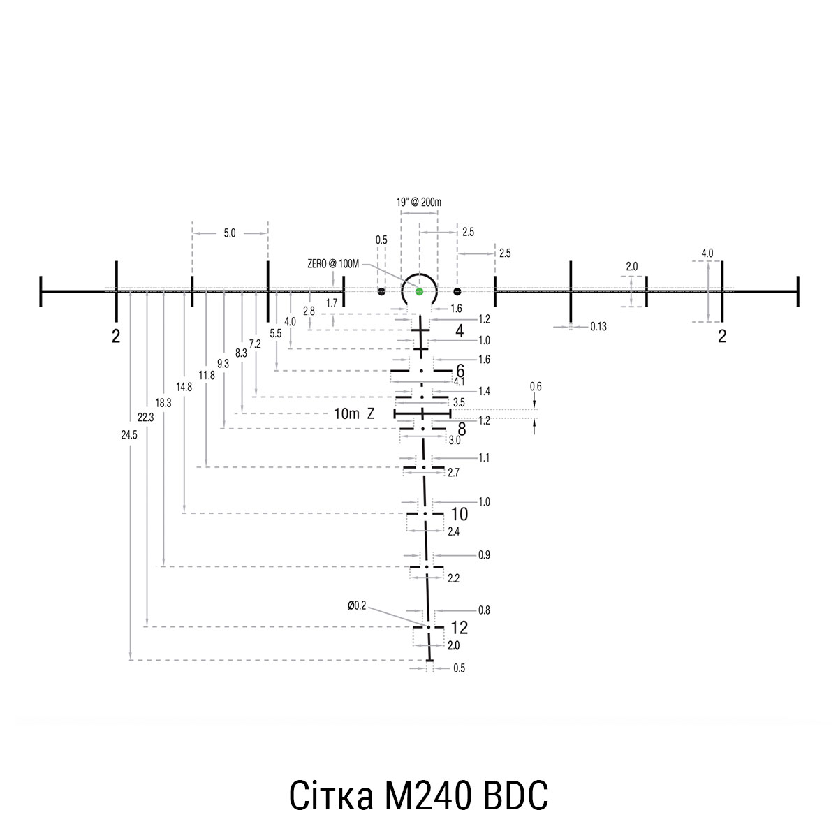 - Тип прицільної сітки: M240 Horseshoe/Dot (з компенсацією падіння кулі BDC)