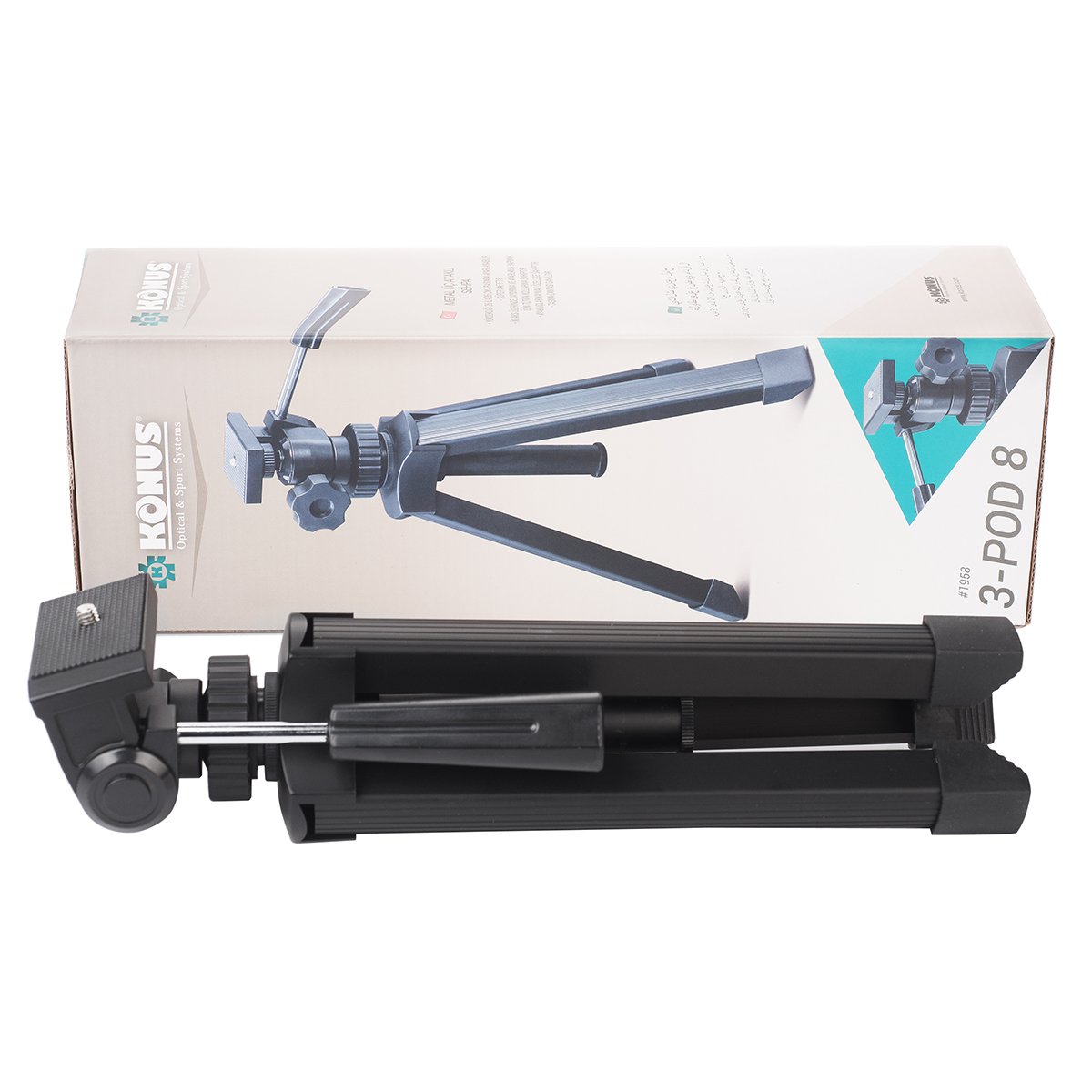 Універсальний настільний штатив KONUS TRIPOD-8 призначений для використання з фотоапаратами, підзорними трубами та біноклями.