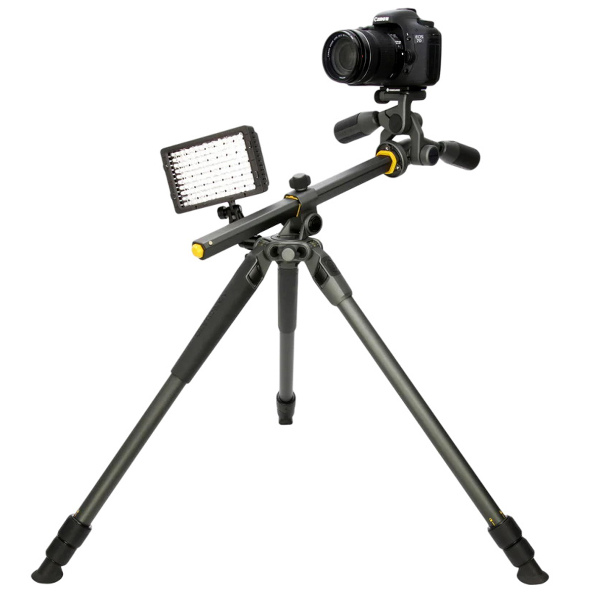Максимальна висота знімання сягає 175 см, дозволяючи комфортно працювати операторам високого зросту та знімати поверх перешкод без необхідності надмірно нахилятися. У складеному вигляді його довжина становить 76 см, що є розумним компромісом за неймовірну стабільність та функціональність, які він пропонує. Спеціалізована відеоголовка PH-32 демонструє чудовий діапазон нахилу: від +60° для знімання архітектури чи неба, до -90°, даючи змогу направити камеру вертикально вниз. Ця функція, особливо у поєднанні з горизонтальним режимом центральної колони MACC, перетворює штатив на ідеальний інструмент для знімання оглядів продуктів, кулінарних блогів чи копіювальних робіт.
