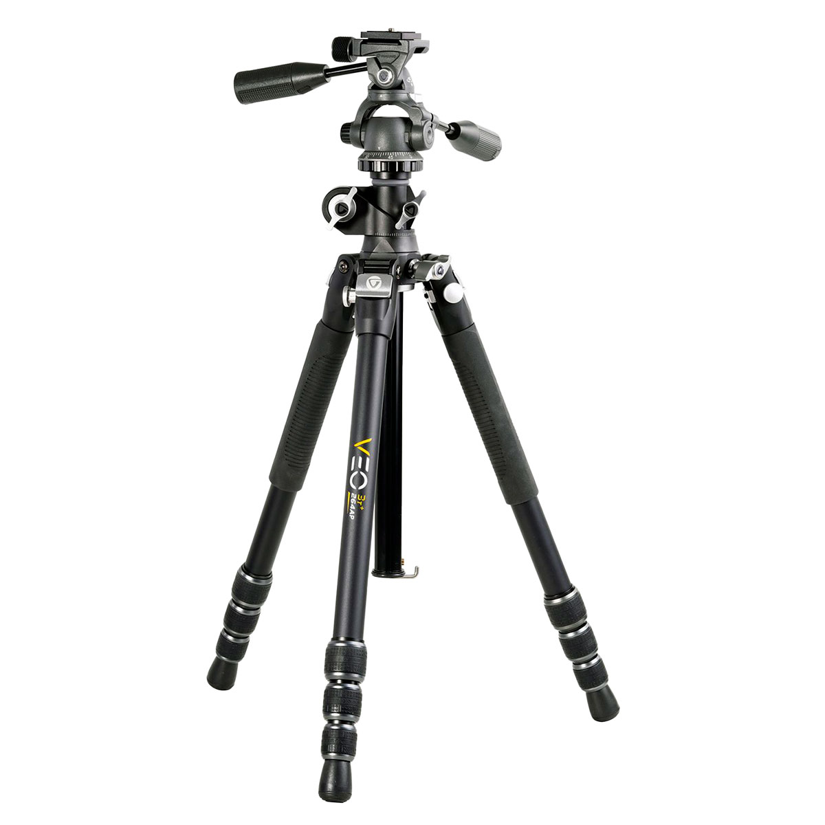 Vanguard VEO 3T+ 264AP – чотирьохсекційний штатив преміум-класу, на якому закріплена знімна 3D-головка з двома телескопічними ручками управління і стандартом кріплення штативної платформи Arca-Swiss. У комплекті з головкою поставляється і штативна платформа QS-65, також стандарт кріплення Arca-Swiss дозволяє використовувати практично будь-які штативні платформи інших виробників, що мають профіль кріплення "ластівчин хвіст". Відмінною особливістю головки є наявність кнопки, що дозволяє розгорнути верхню телескопічну ручку на 90°, що сприяє, як загальній зручності роботи, так і зручності роботи зі штативом для шульги. Одна з ніжок штатива від'єднується і в сукупності з центральною колоною трансформується в монопод. Секції ніжок швидко фіксуються за допомогою затискачів Quick-twist Lock. Кожна з ніжок отримала ергономічну систему фіксації кута нахилу, де фіксуюча кнопка розташовується саме там, де знаходиться великий палець під час установки кута ніжок. Кожна з ніжок має як гумові протиковзкі стопи, так і сталеві шипи для слизьких поверхонь. Гумові стопи знімаються, і на їх місце вкручуються шипи.