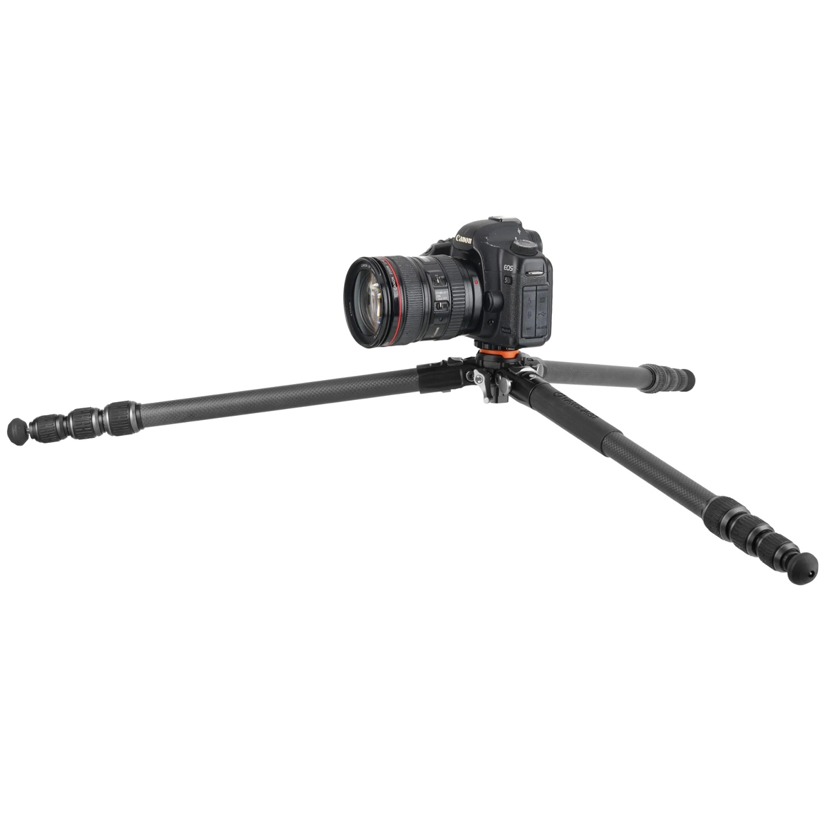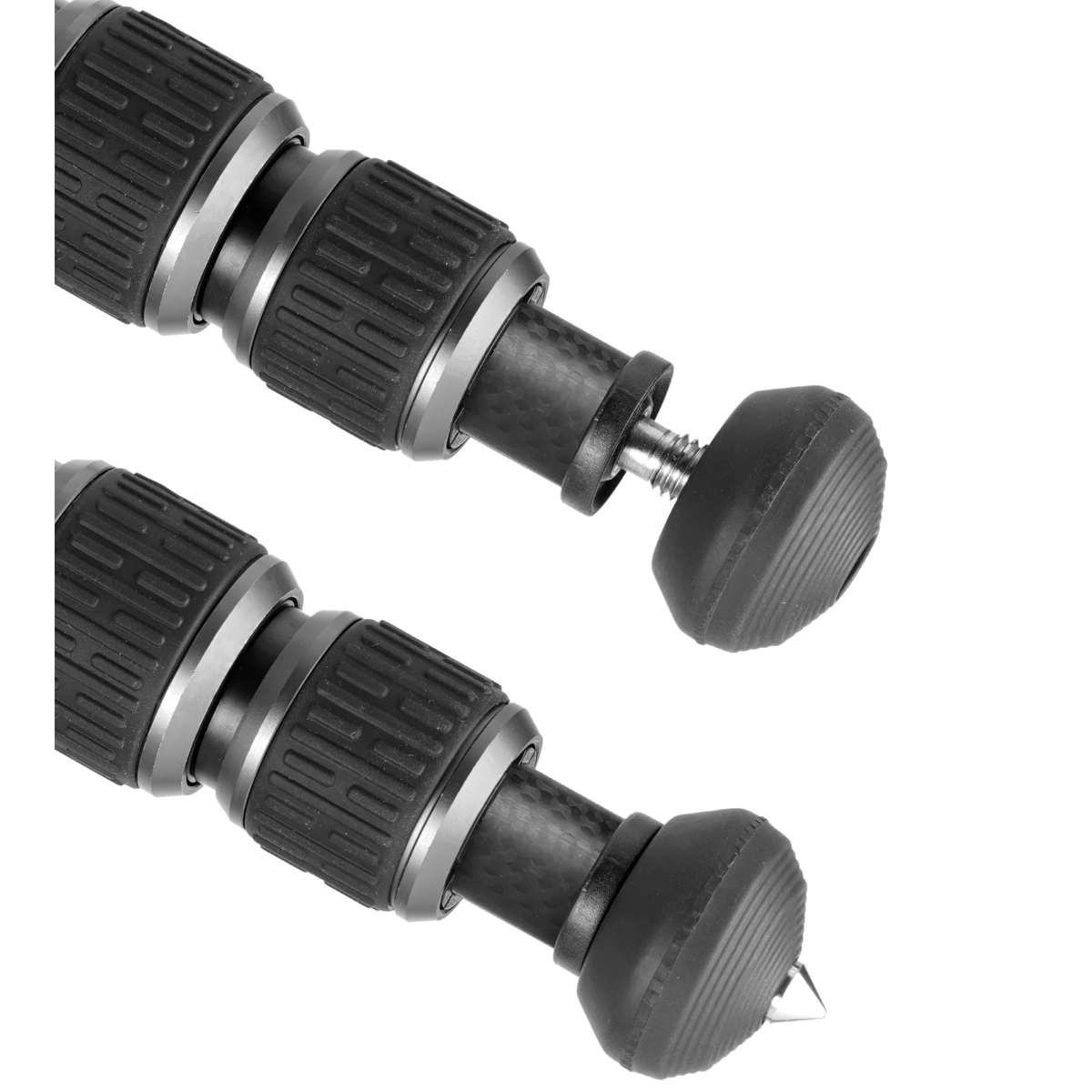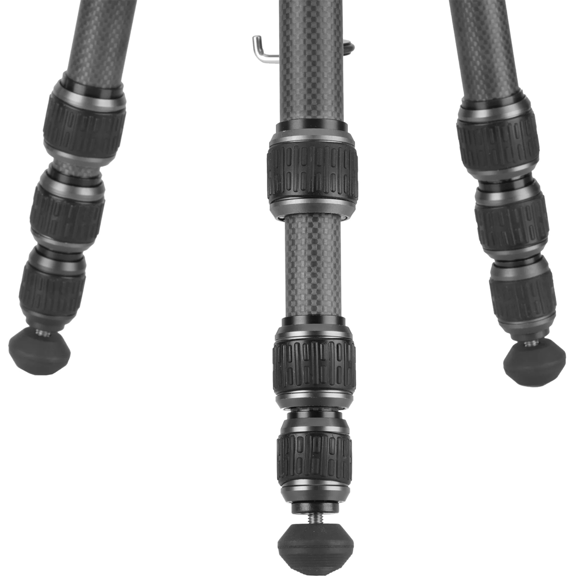 Конструкція штатива передбачає 4-секційні телескопічні ніжки, які фіксуються за допомогою швидкодійних замків типу Quick-twist. Це дозволяє оперативно змінювати висоту штатива в широкому діапазоні — від 23 до 162,5 см, адаптуючи його до різних умов знімання. Кожна ніжка має фіксацію під одним із трьох кутів — 23°, 50° або 80°, що забезпечує надійне встановлення навіть на нерівній чи похилій поверхні. Для додаткової стійкості на м’якому ґрунті або в умовах підвищеної вологості передбачені висувні сталеві шипи на кінцях ніжок, які покращують зчеплення з різними типами покриття.