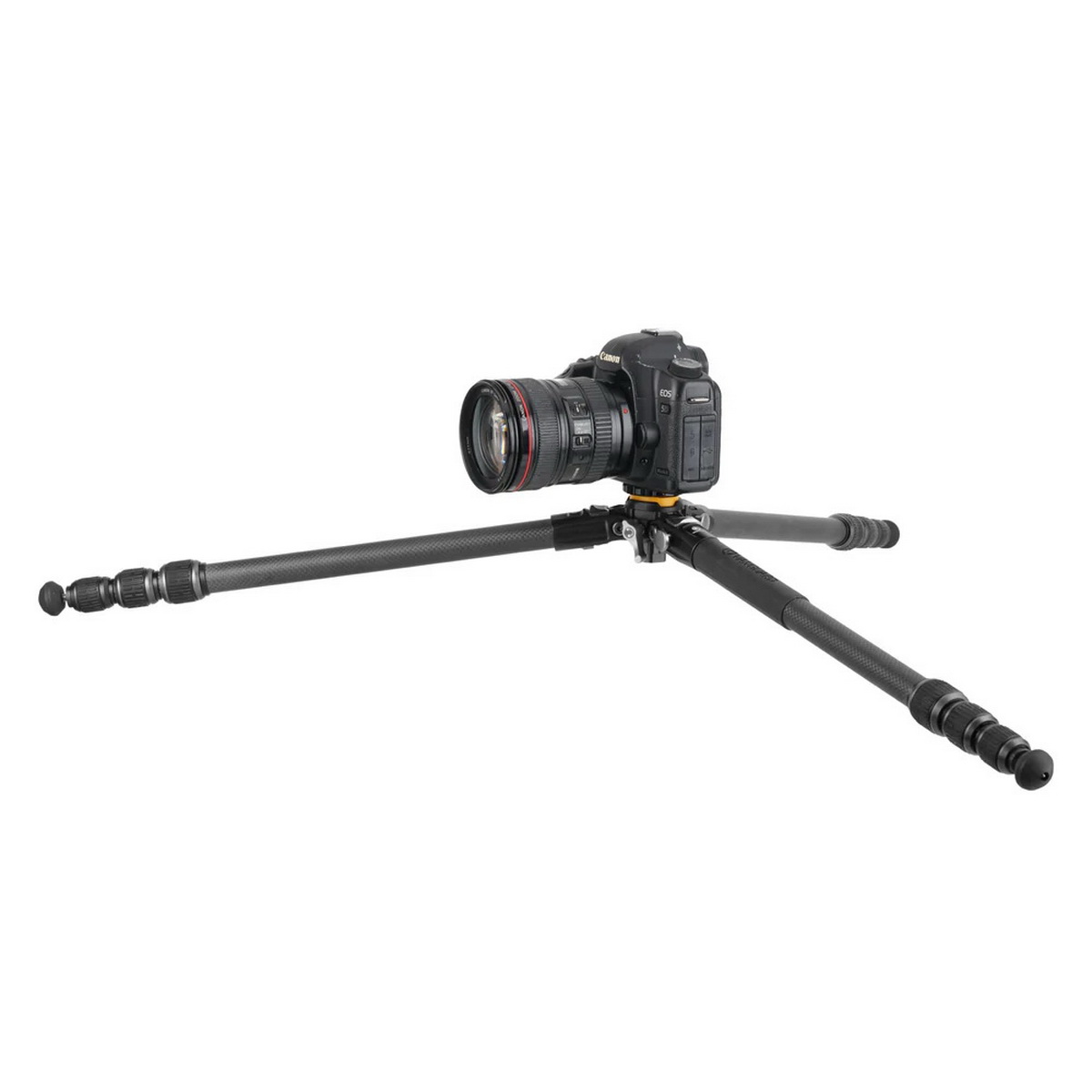 Штатив виготовлений з карбону (вуглецевого волокна), завдяки чому його вага становить всього 1.63 кг. Це робить його чудовим вибором для тривалих піших походів та подорожей, де кожен грам має значення. Попри свою легкість, штатив здатний витримувати навантаження до 6 кг, чого достатньо для більшості камер навіть із важкими об'єктивами. Для комфортного перенесення, особливо в холодну пору року, одна з ніжок має ергономічну накладку з полімерного каучуку. Штатив оснащений бульбашковим рівнем для точного виставлення горизонту.