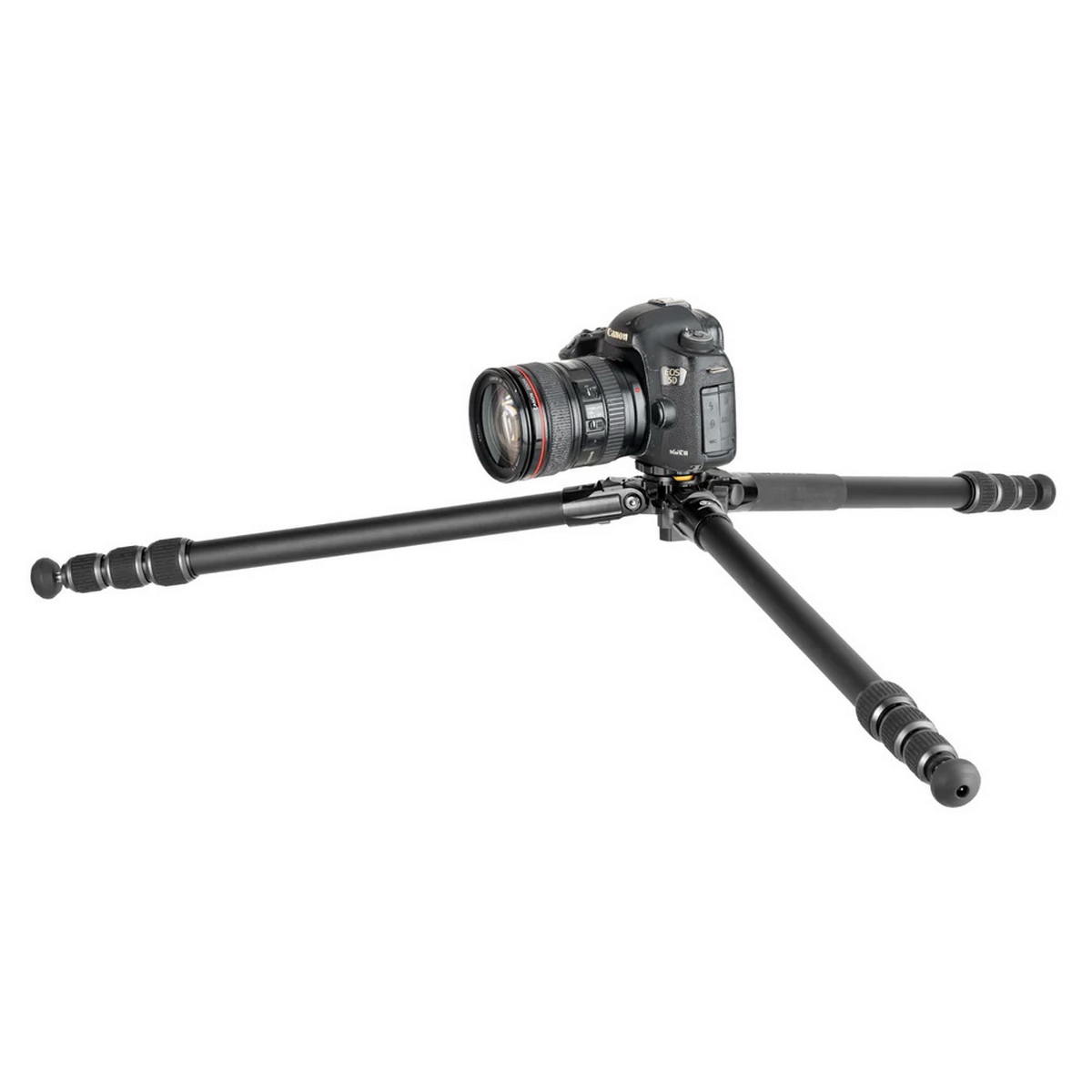 Основою конструкції є міцні чотирисекційні алюмінієві ніжки, які фіксуються за допомогою швидких та надійних цангових затискачів Quick-twist Lock. Вони дозволяють легко та швидко налаштувати необхідну висоту. Верхня секція ніжок має діаметр 26 мм, гарантуючи високу жорсткість та стійкість всієї конструкції. Інноваційна шестикутна центральна колона запобігає небажаному обертанню та підвищує стабільність. Також є вбудована коротка колона: нижня частина центральної колони легко відкручується, дозволяючи опустити штатив максимально низько до землі без необхідності купувати та носити з собою окремий адаптер для макрознімання. Ноги можна зафіксувати під трьома різними кутами (23, 50 та 80 градусів), а наявність висувних шипів під гумовими накладками забезпечує надійне зчеплення з будь-якою поверхнею.