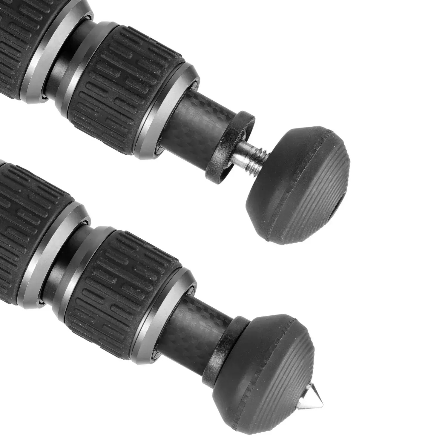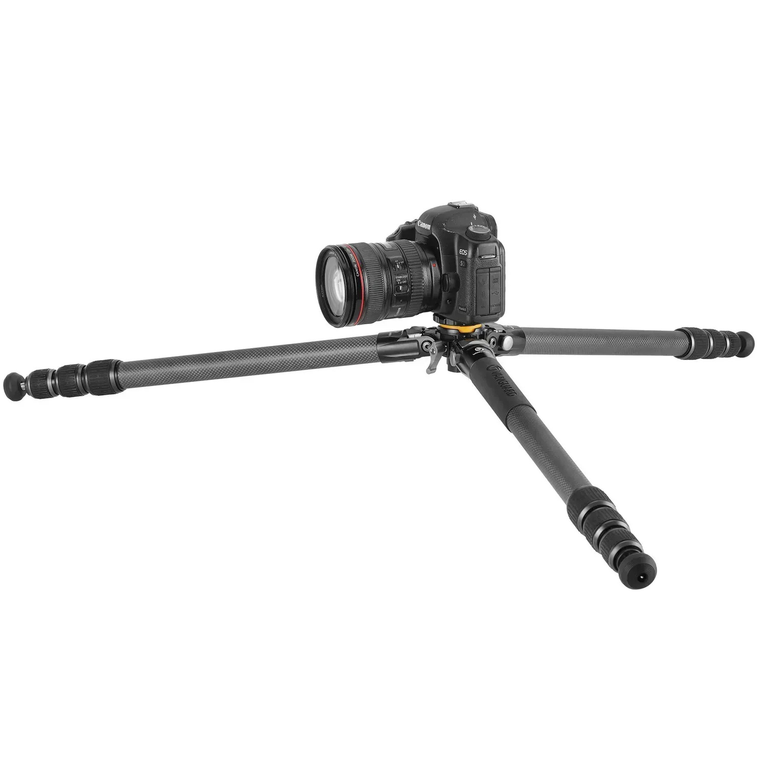 Конструкція штатива передбачає чотирисекційні ніжки, які регулюються за допомогою надійної системи фіксації Quick-twist. Такий механізм забезпечує швидке налаштування висоти та стабільність навіть на нерівних поверхнях. Діапазон висоти становить від 23,5 см до 170 см (144 см - з центральною колоною в нижньому положенні), а кути нахилу ніжок - 23°, 50° та 80°, що дозволяє проводити знімання з різних ракурсів і під будь-яким кутом. Для макрознімання передбачена можливість встановлення центральної колони в нижньому положенні, що відкриває нові творчі можливості для фотографів.