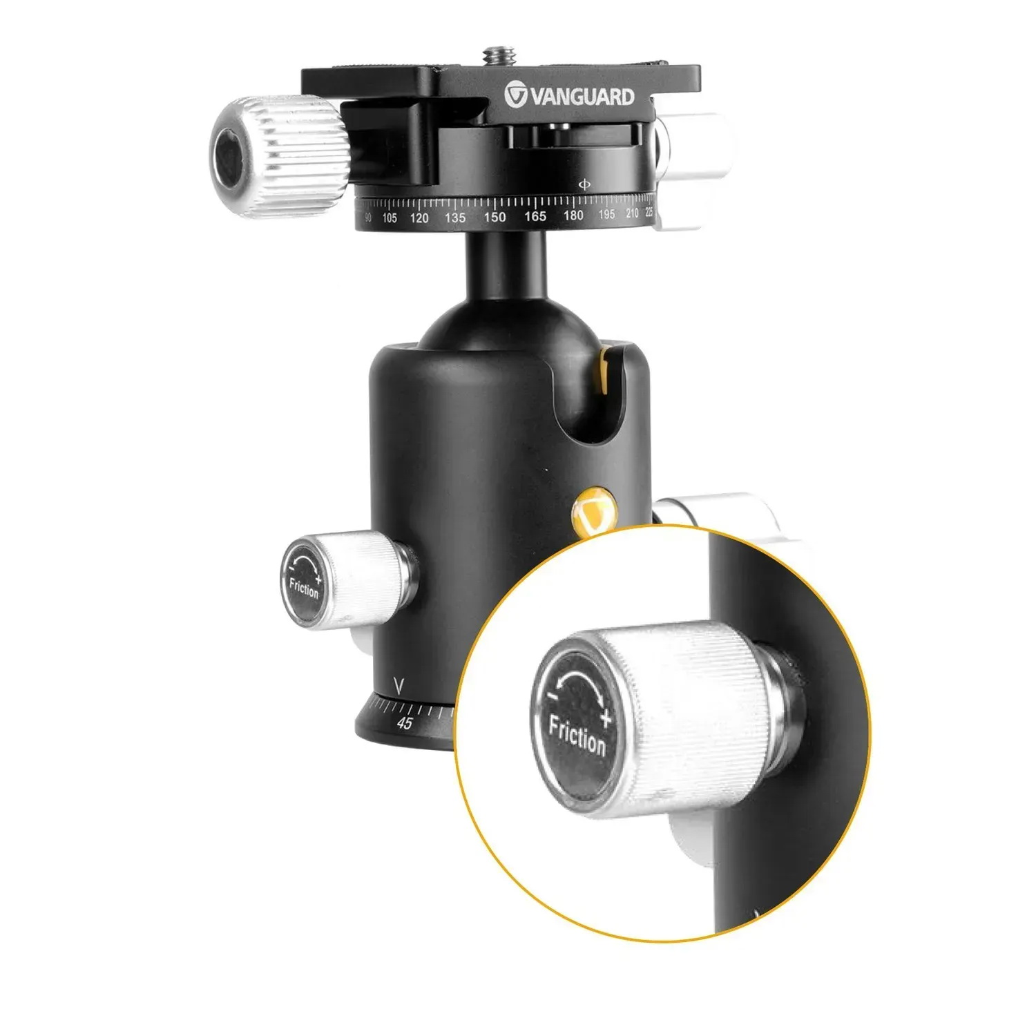 Штатив оснащений кульовою головкою VEO BH-250S із широким кутом бокового нахилу, що дозволяє зручно керувати обладнанням однією рукою, точно направляючи оптичний прилад у потрібному напрямку. Головка підтримує стандарт кріплення Arca-Swiss, що забезпечує сумісність із широким спектром аксесуарів та швидке встановлення камери.
