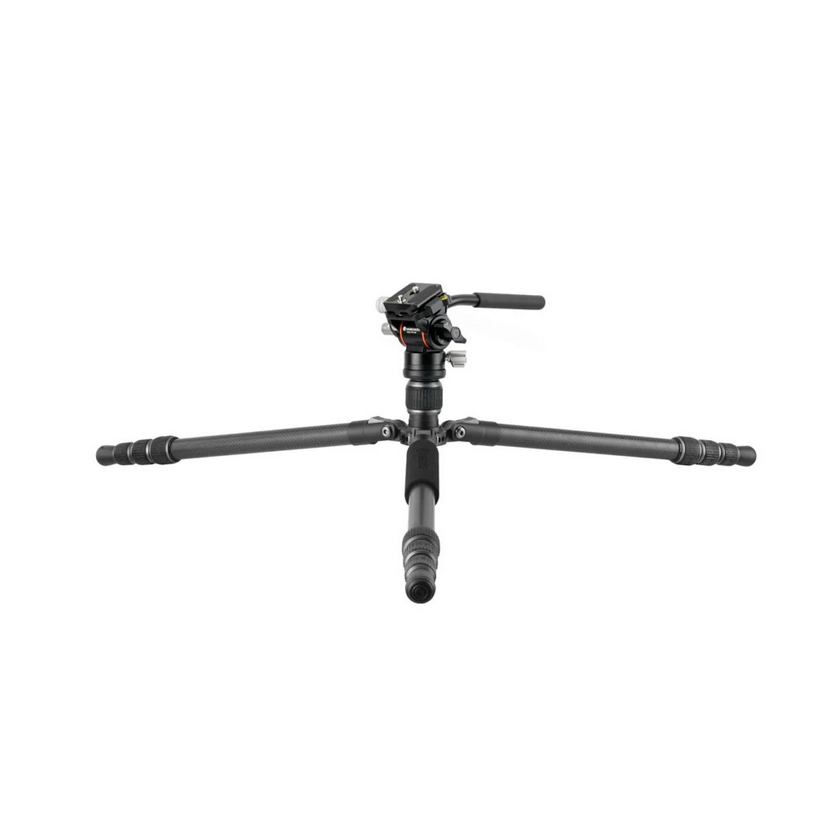 Конструкція штатива складається з чотирьох секцій із діаметром ніжок 23 мм, надаючи ідеальне співвідношення стабільності та легкості. Механізм фіксації Flip дозволяє швидко заблокувати або розкласти кожну секцію одним рухом. Для впевненої роботи на будь-якій поверхні передбачено три кути розведення ніжок — 20°, 50° та 80°, що забезпечують надійне встановлення навіть на нерівному рельєфі. Центральна колона має вбудовану коротку секцію, завдяки якій можна знімати практично з рівня землі, це зручно для макрознімання або творчих ракурсів. Знизу колони розташований пружинний гачок для підвішування додаткового вантажу, який підвищує стійкість конструкції під час сильного вітру.