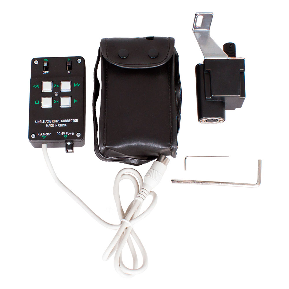 Варто відзначити, що користувачу доступна різна швидкість наведення: 1x, 2x та 8x від зіркової швидкості. Енергоживлення приводу здійснюється від 4 батарейок типорозміру D, які забезпечують до 20 годин роботи.