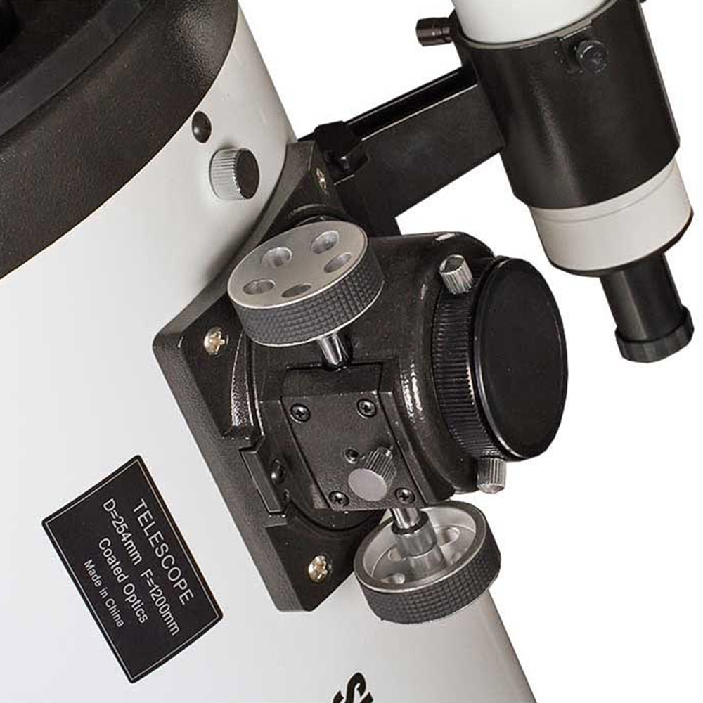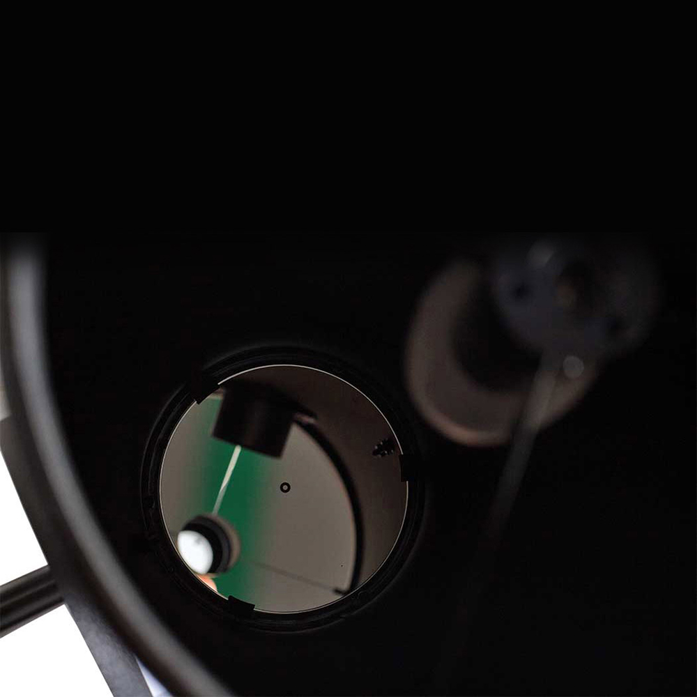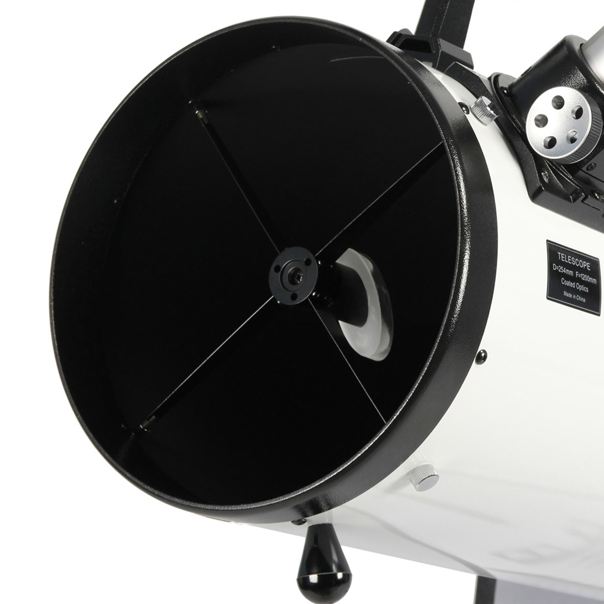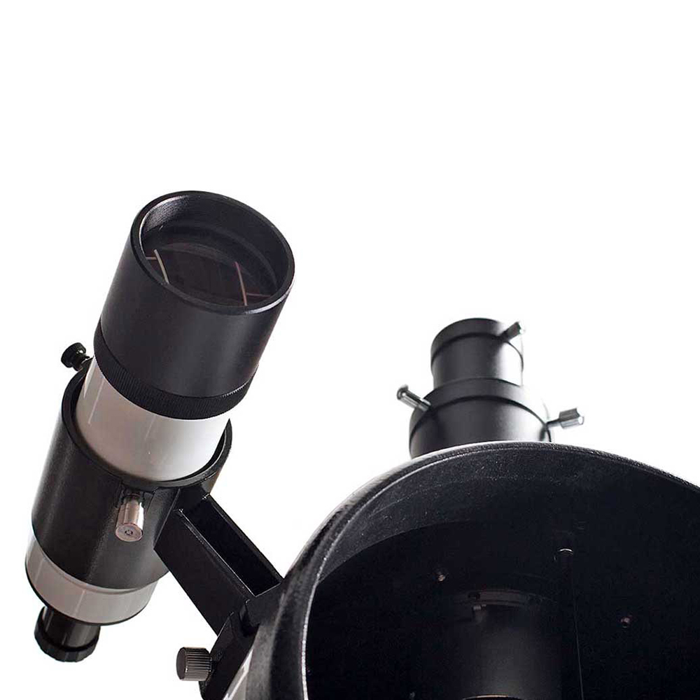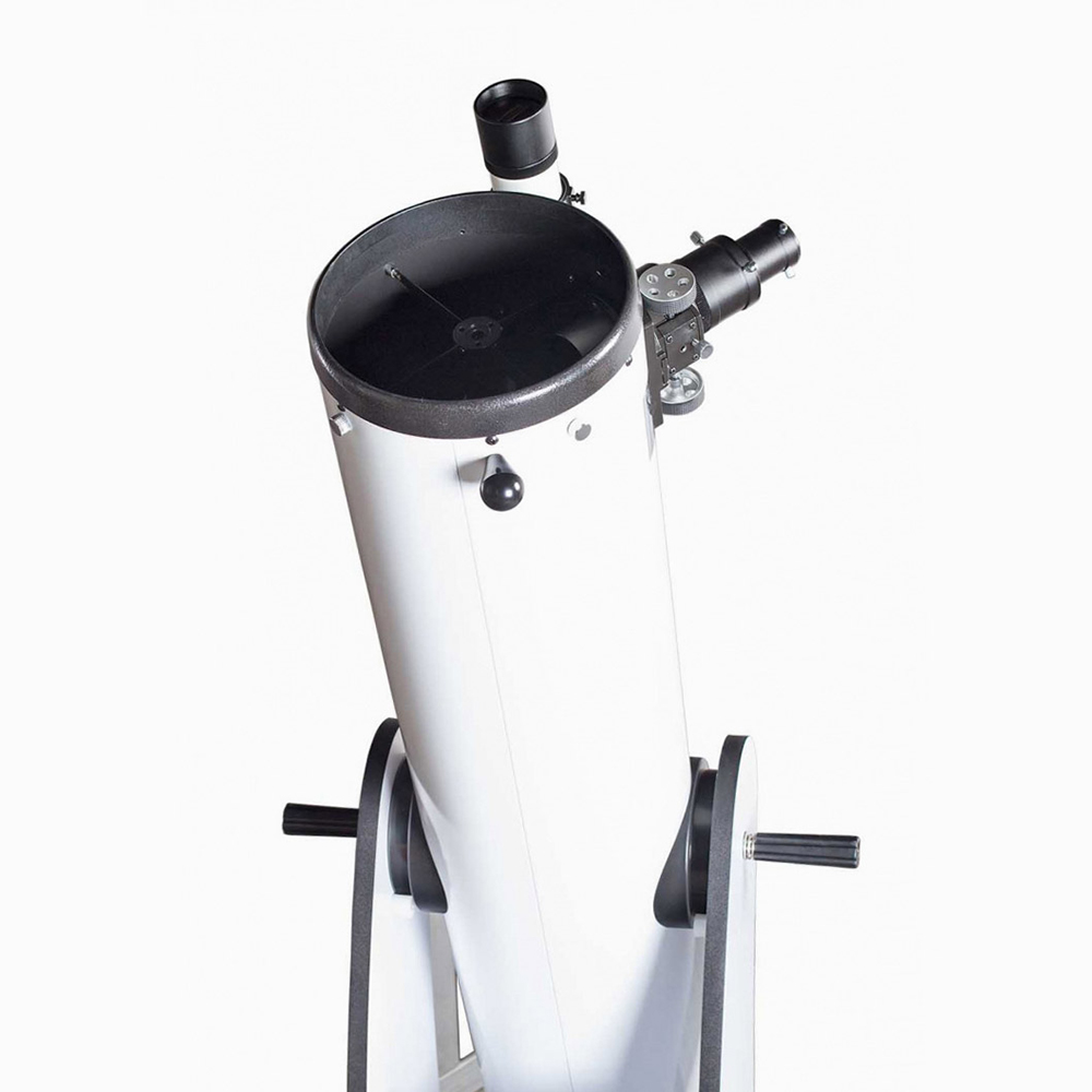 Головне дзеркало телескопа має параболічну конструкцію. Діагональне (вторинне) дзеркало телескопа кріпиться чотирма тонкими розтяжками, що зменшує небажані промені на зображеннях зірок. Оптичний видошукач з параметрами 9х50 допоможе вам наводитися на об'єкт. Зображення з дзеркал проектується на фокусер Крейфорда з посадковим діаметром 2" і перехідником для окулярів 1.25". Оптична труба обертається на простому і надійному монтуванні Добсона з плавним рухом і можливістю регулювання зусилля.