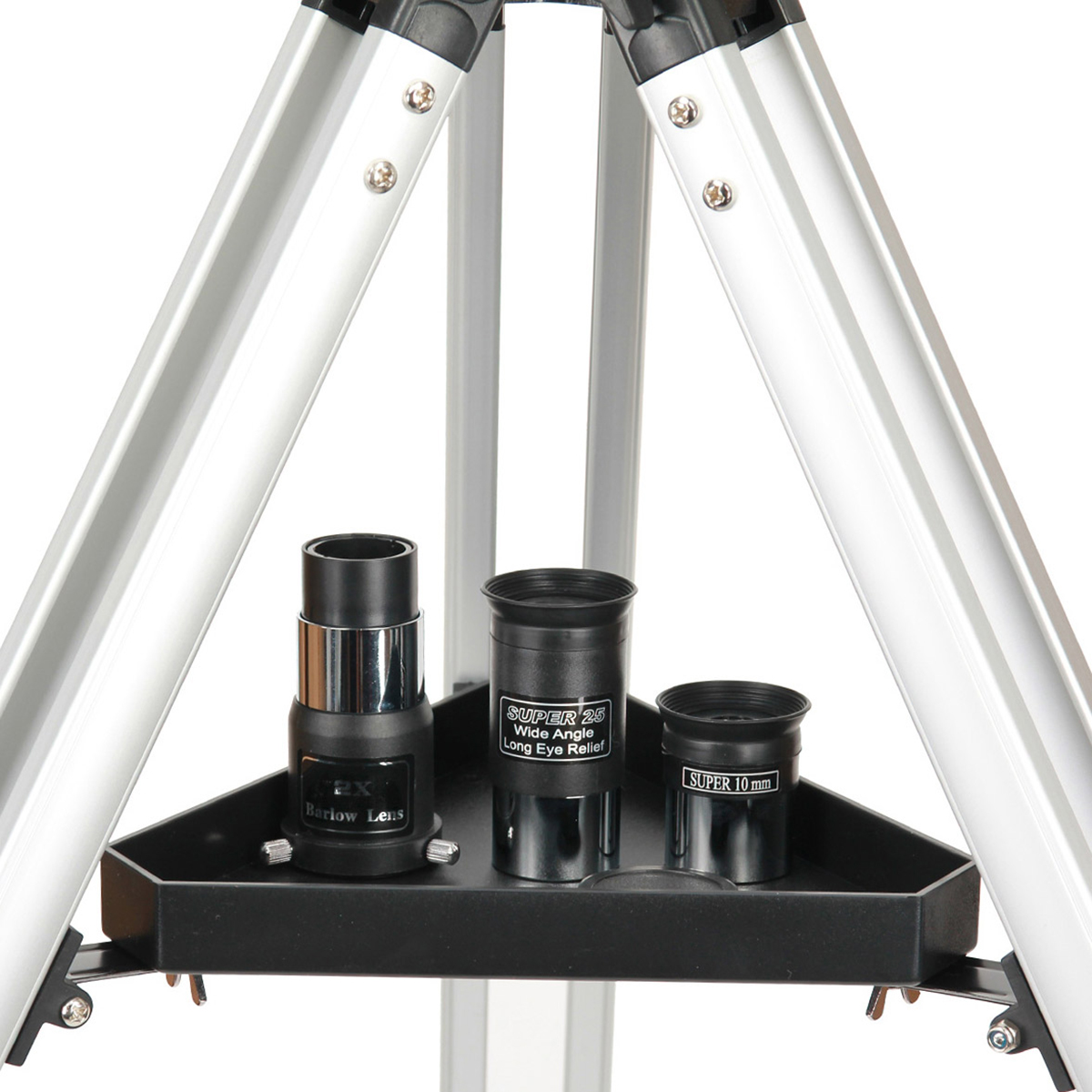 Телескоп Sky-Watcher BK 709EQ1 має діаметр об'єктива 70 мм, фокусну відстань 900 мм і світлосилу 12.9. Цього буде цілком достатньо для проведення планетарних спостережень на початковому рівні. Використовуючи комплектні окуляри на 10 і 25 мм, користувачеві будуть доступні збільшення 36х і 90х. У комплект також входить лінза Барлоу 2х, яка подвоїть ці цифри. Поверхня Місяця відкриється сотнями цікавих деталей: гірськими ландшафтами, кратерами, морями. Також ви зможете побачити атмосферні шари Юпітера і його супутники, кільця Сатурна, фази Меркурія і Венери. Далекі Нептун і Уран будуть нагадувати великі кольорові зірки. Для огляду також доступні кулясті зоряні скупчення, найяскравіші галактики і дифузні туманності. Рейковий фокусер оптичної труби має посадковий діаметр 1.25" з різьбою (М45 х 0.75) на хвостовику. Цифрову камеру можна підключити до телескопа за допомогою відповідного адаптера для камери.
